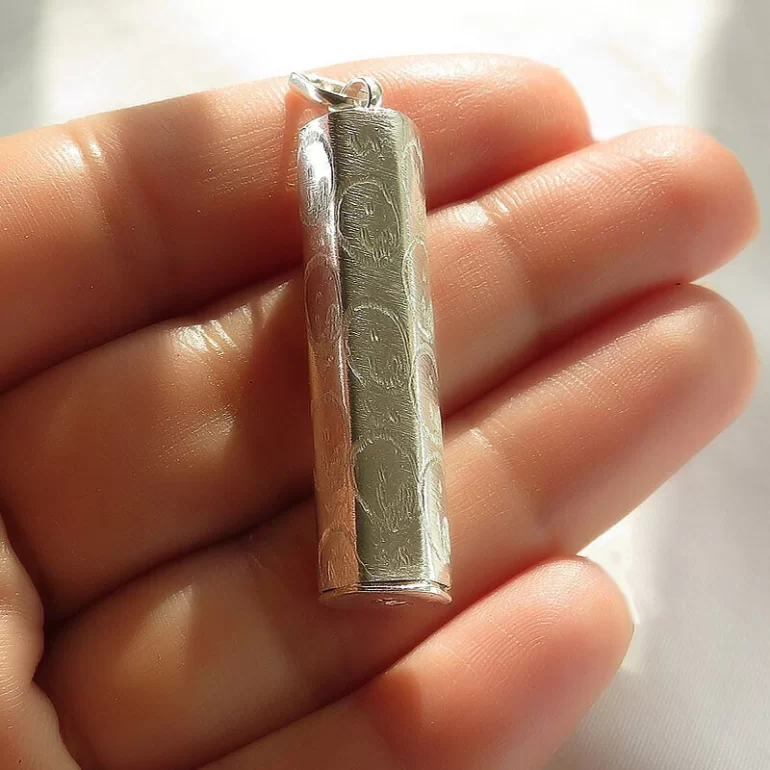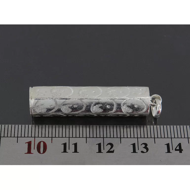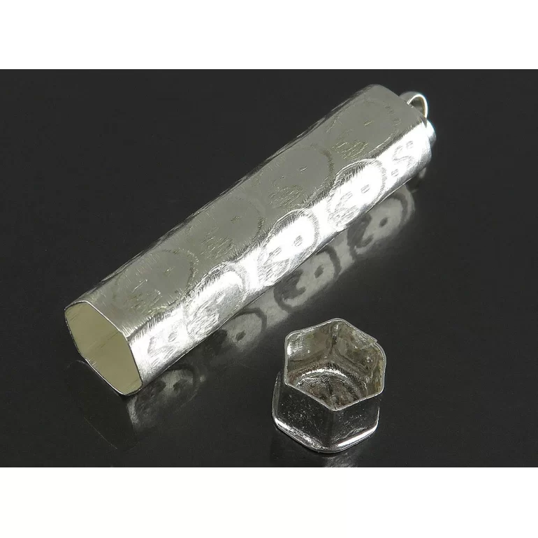 جادعایی نقره بازشو استوانه چند ضلعی که در ابعاد 4 سانتیمتر و با وزن حدود 3 گرم میباشد. این جادعایی با نقره 925 عیار ساخته و پرداخته شده است. و مناسب برای نگهداری و مراقبت از حرز شما جهت جلوگیری از مفقود شدن دعا میباشد.
