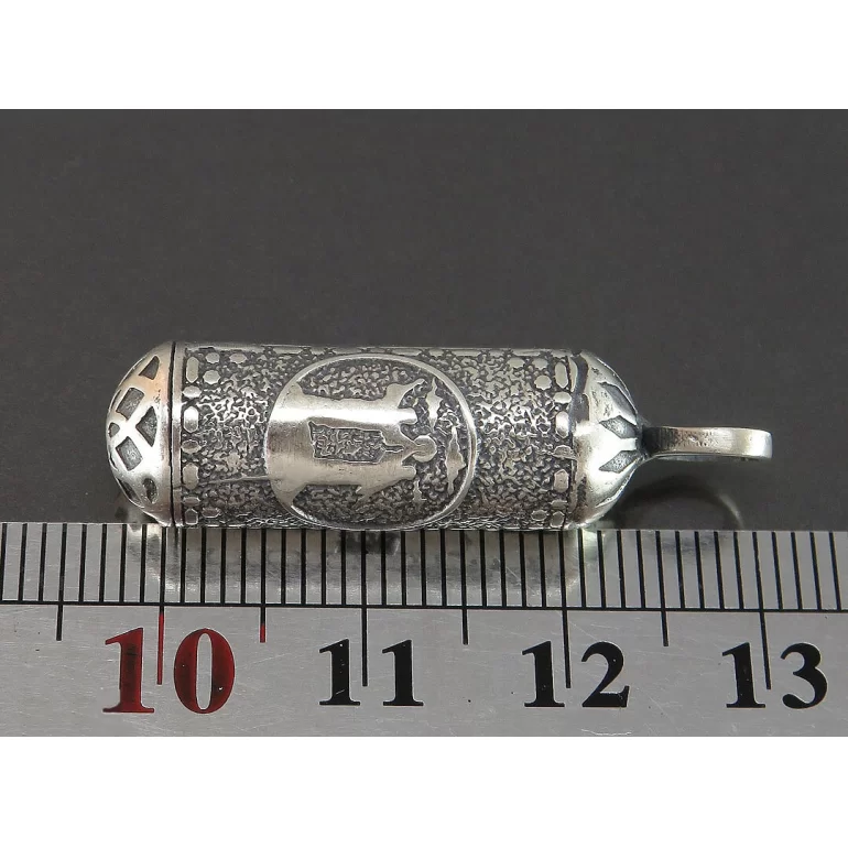 جادعایی نقره (من کنت مولا فهذا علی مولا) که در ابعاد 3 سانتیمتر و با وزن حدود 5 گرم میباشد. این جادعایی با نقره 925 عیار ساخته و پرداخته شده است. و مناسب برای نگهداری و مراقبت از حرز شما جهت جلوگیری از مفقود شدن دعا میباشد.
