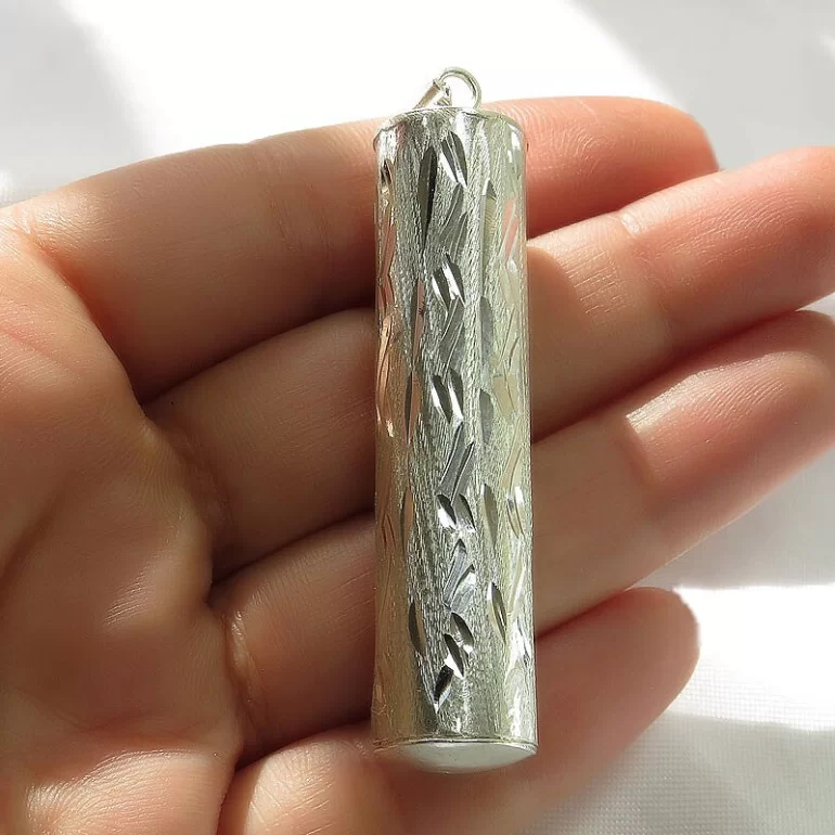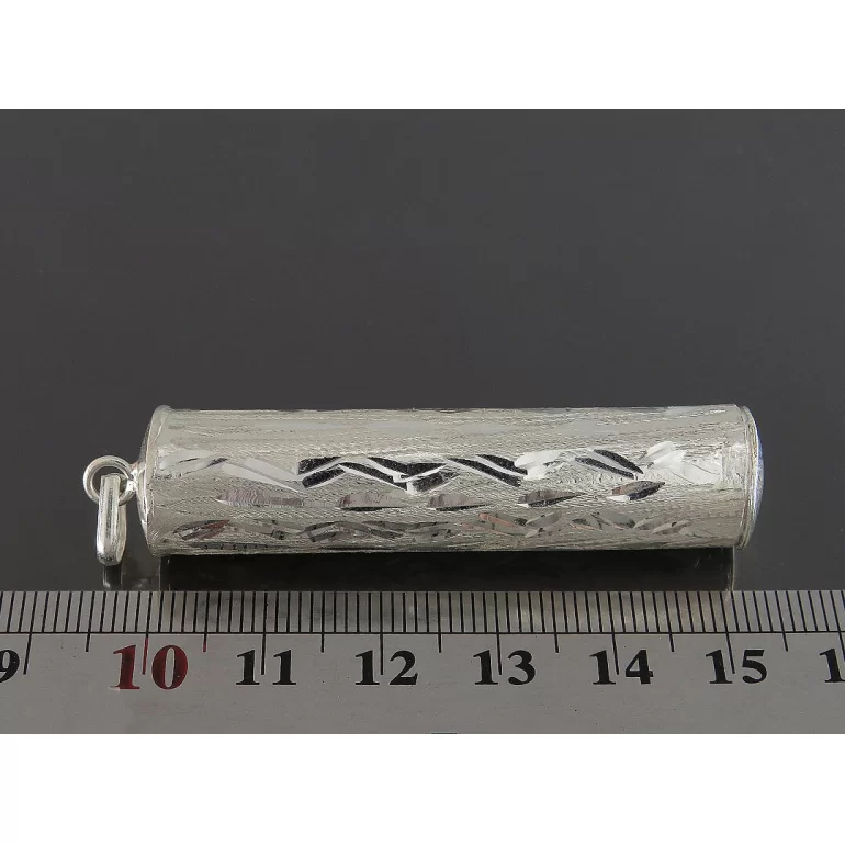 جادعایی نقره خوش تراش بازشو که در ابعاد 5.5 سانتیمتر و با وزن حدود 6 گرم میباشد. این جادعایی با نقره 925 عیار ساخته و پرداخته شده است. و مناسب برای نگهداری و مراقبت از حرز شما جهت جلوگیری از مفقود شدن دعا میباشد.