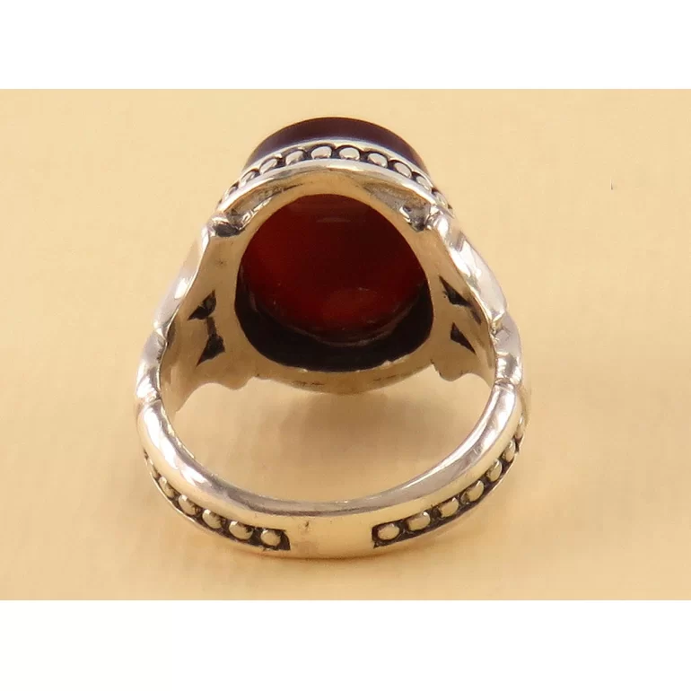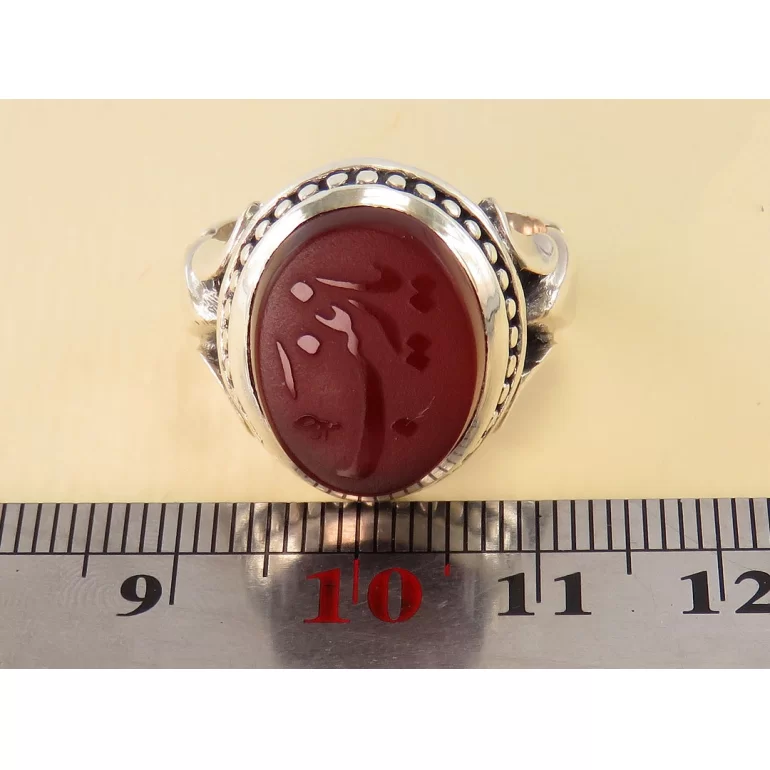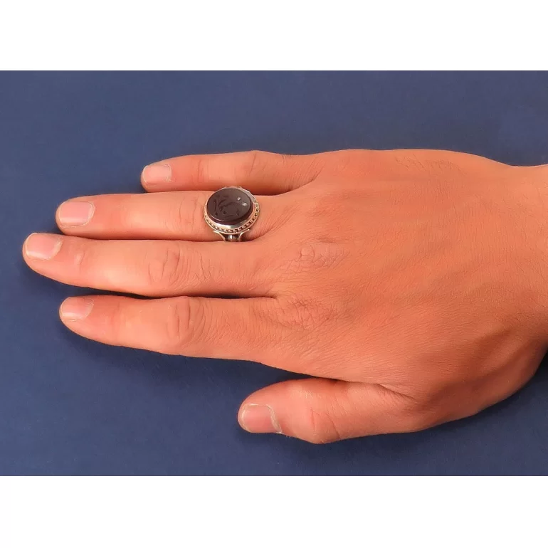 رکاب این انگشتر مردانه از نقره 925 عیار بوده و نگین آن از جنس عقیق قهوه ای خراسان با حکاکی یا زینب می باشد. وزن این انگشتر نفیس تقریبا 11.5 گرم است و به صورت حرفه ای به دست استادکار خبره و باتجربه ساخته می شود.