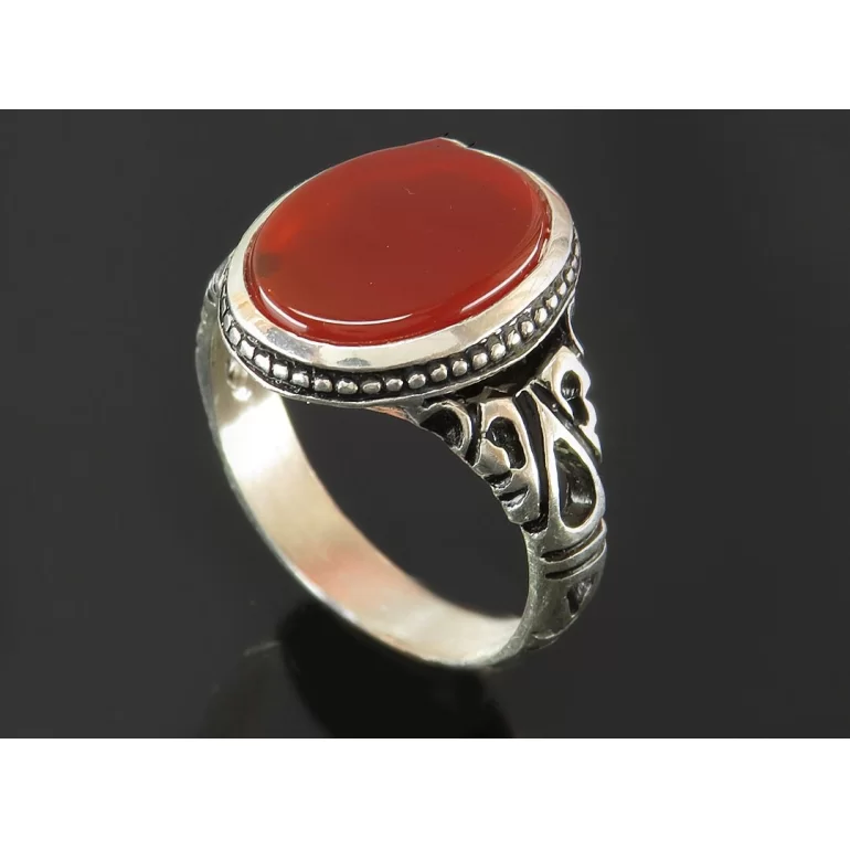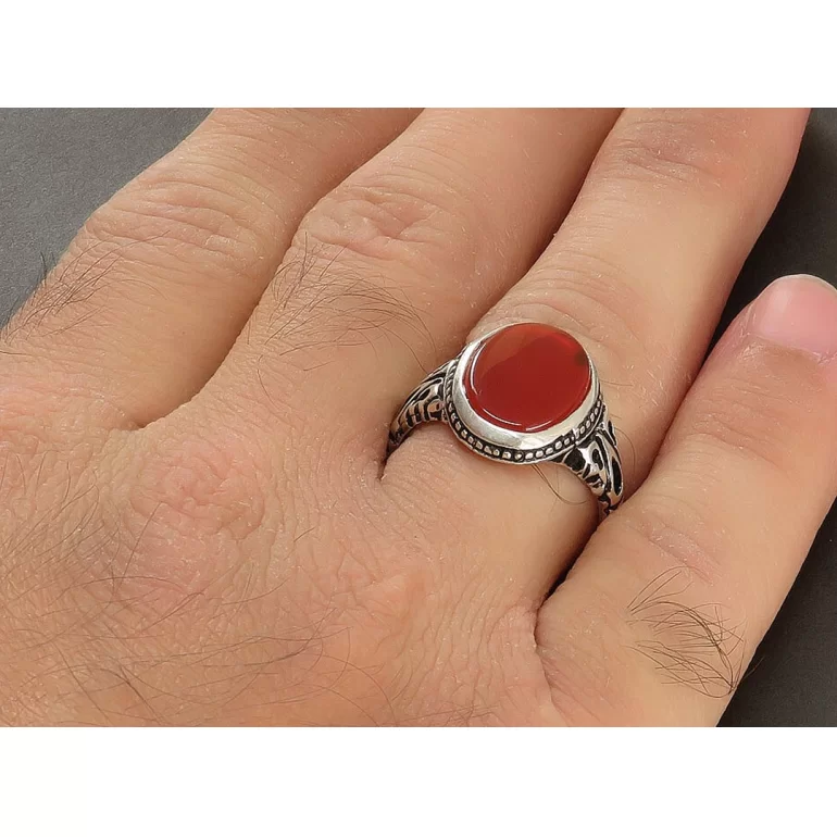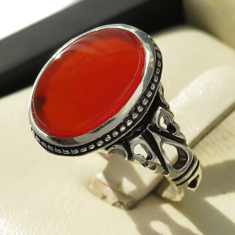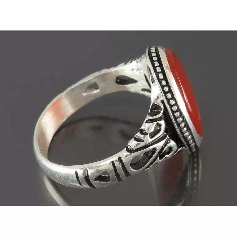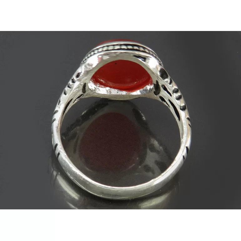 رکاب این انگشتر مردانه از نقره 925 عیار بوده و نگین آن از جنس عقیق قرمز خوشرنگ می باشد. وزن این انگشتر نفیس تقریبا 7 گرم است و به صورت حرفه ای به دست استادکار خبره و باتجربه ساخته می شود.
