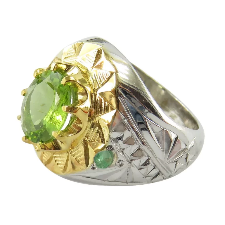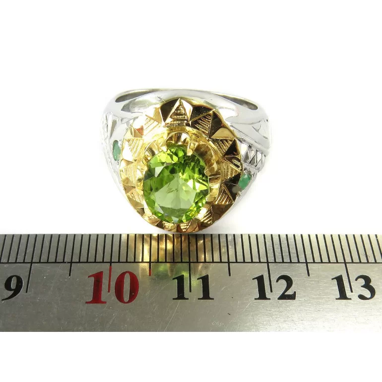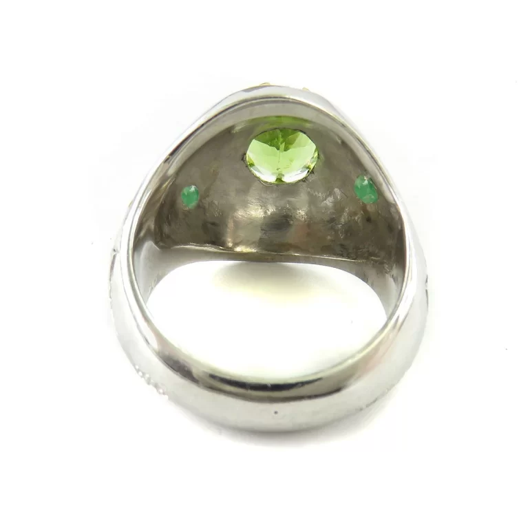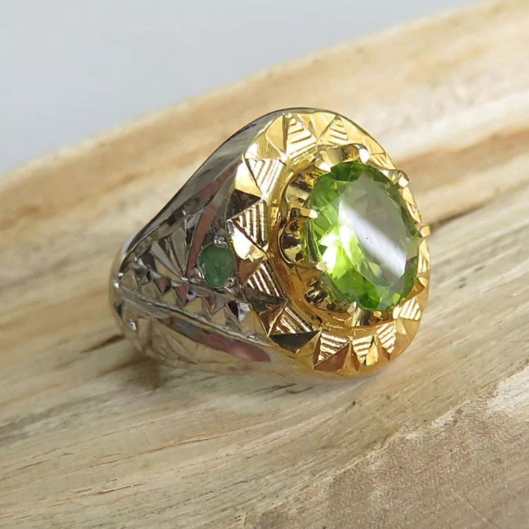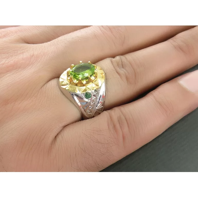 رکاب این انگشتر مردانه از نقره 925 عیار بوده و نگین آن از جنس زبرجد می باشد. وزن این انگشتر نفیس تقریبا 15گرم است و به صورت حرفه ای به دست استادکار خبره و باتجربه ساخته می شود و دارای مخرج کاری دست ساز است.