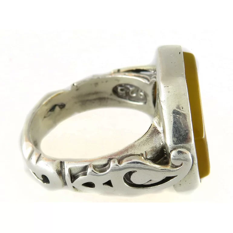 انگشتر نقره مردانه مدل عقیق زرد حکاکی یا ابا صالح المهدی کد 73216