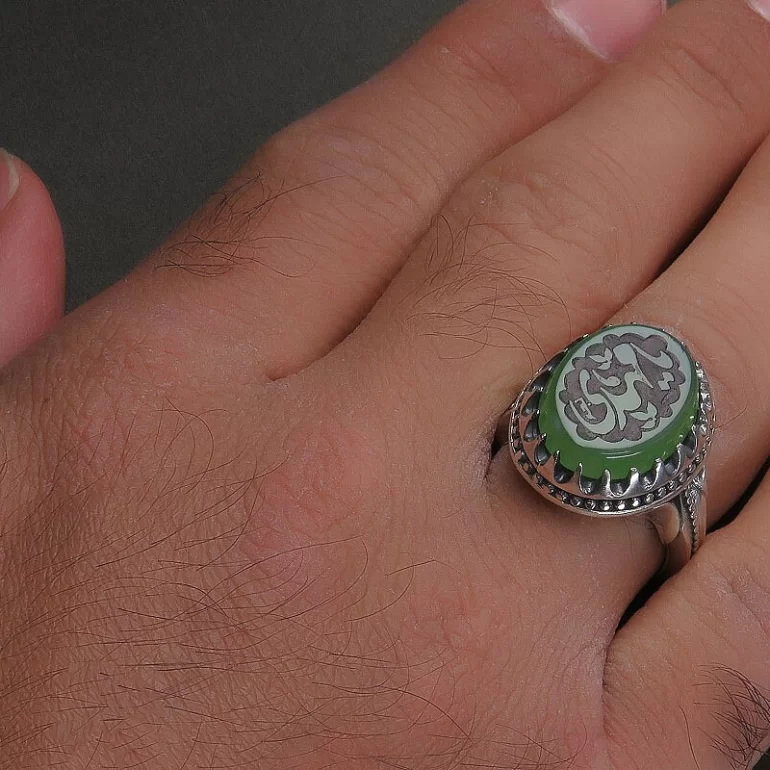 انگشتر مردانه عقیق یا مهدی رکاب نقره - کد 80381