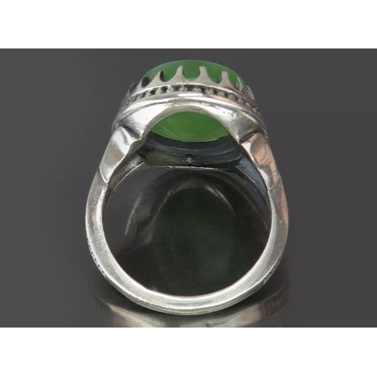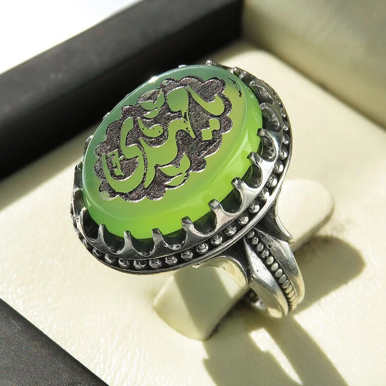 انگشتر مردانه عقیق یا مهدی، رکاب این انگشتر از نقره 925 عیار با وزن تقریبا 13.5 گرم است. سفارشات هر انگشتر بلافاصله به دست اساتید خبره و زبردست در زمان کوتاهی، درست مطابق سایزی که شما ثبت میکنید ساخته شده و آماده ارسال میشوند. بدنه این انگشترها دارای ضخامت و کیفیت بالایی میباشند، به طوری که ترکیب نقره های اصیل با سنگ نگینشان، زیبایی خیره کنندهای را خواهند ساخت. محصولات انگشتر ربیع از قبل آماده نشده اند و همه آنها مطابق با سایز دست شما که از طریق منو انتخاب میکنید، ساخته خواهند شد.