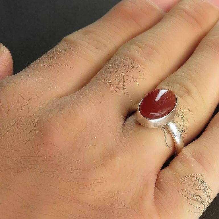 رکاب این انگشتر مردانه از نقره 925 عیار بوده و نگین آن از جنس عقیق یمن قهوه ای کلاسیک می باشد. وزن این انگشتر نفیس تقریبا 6.5 گرم است و به صورت حرفه ای به دست استادکار خبره و باتجربه ساخته می شود.
