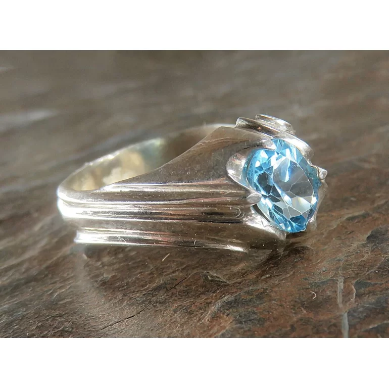 انگشتر مردانه توپاز آبی زیبا رکاب نقره - کد 59162