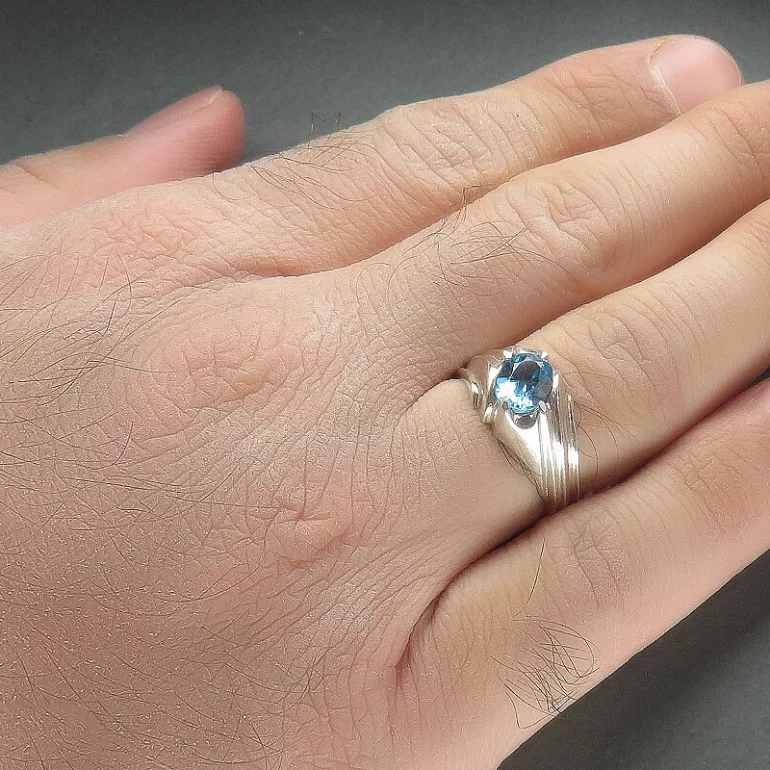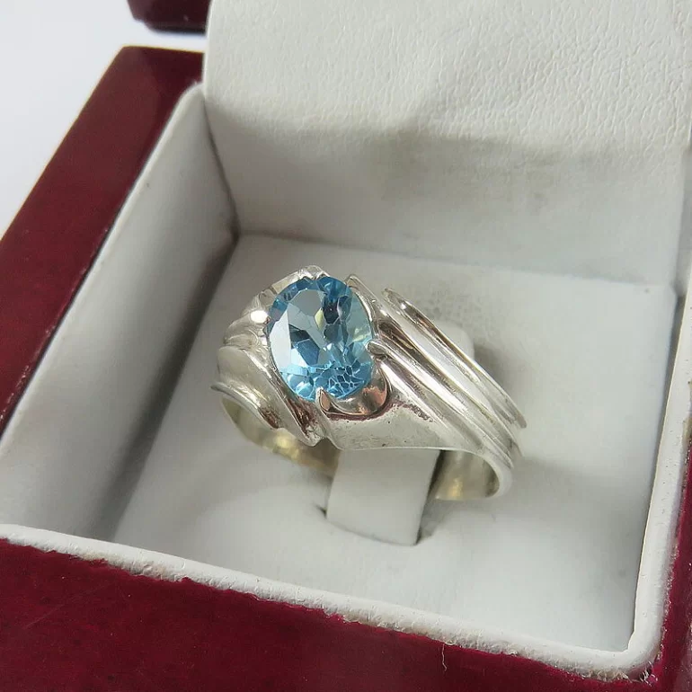 رکاب این انگشتر مردانه از نقره 925 عیار بوده و نگین آن از جنس توپاز می باشد. وزن این انگشتر نفیس تقریبا 6 گرم است و به صورت حرفه ای به دست استادکار خبره و باتجربه ساخته می شود و دارای مخرج کاری دست ساز است.