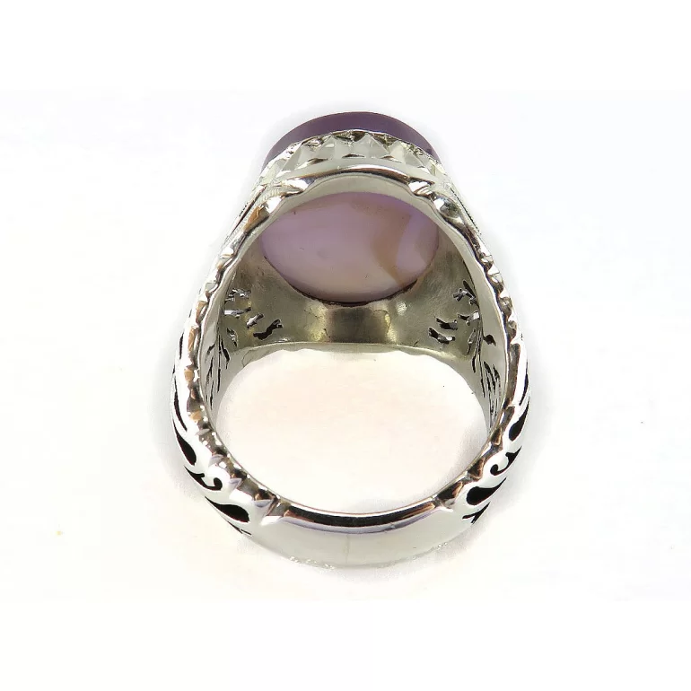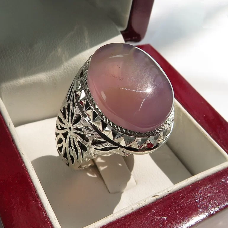 رکاب این انگشتر مردانه از نقره 925 عیار بوده و نگین آن از جنس عقیق یمن دست ساز می باشد. وزن این انگشتر نفیس تقریبا 22.5 گرم است و به صورت حرفه ای به دست استادکار خبره و باتجربه ساخته می شود.
