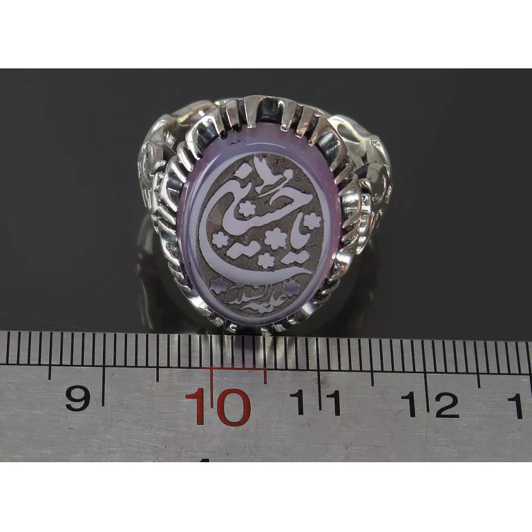رکاب این انگشتر مردانه از نقره 925 عیار بوده و نگین آن از جنس عقیق با حکاکی یا حسین ع می باشد. وزن این انگشتر نفیس تقریبا 13.5 گرم است و به صورت حرفه ای به دست استادکار خبره و باتجربه ساخته می شود.