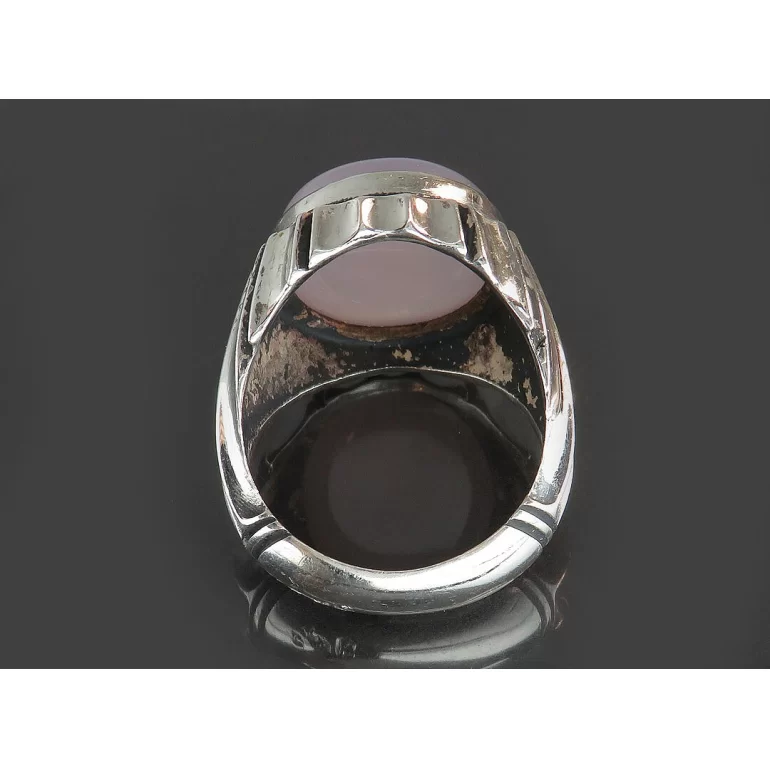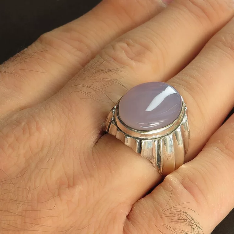 رکاب این انگشتر مردانه از نقره 925 عیار بوده و نگین آن از جنس عقیق یمن کبود دست ساز می باشد. وزن این انگشتر نفیس تقریبا 13.5 گرم است و به صورت حرفه ای به دست استادکار خبره و باتجربه ساخته می شود.
