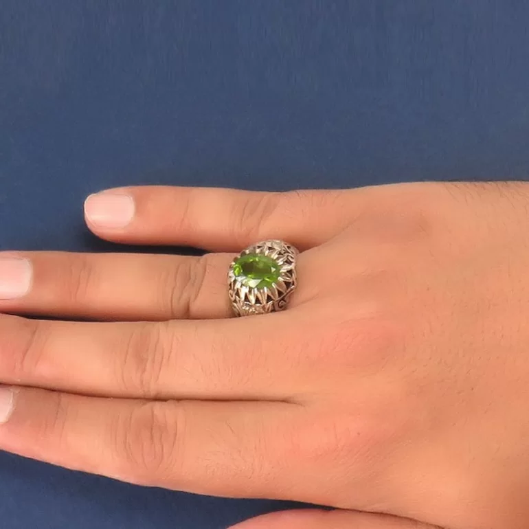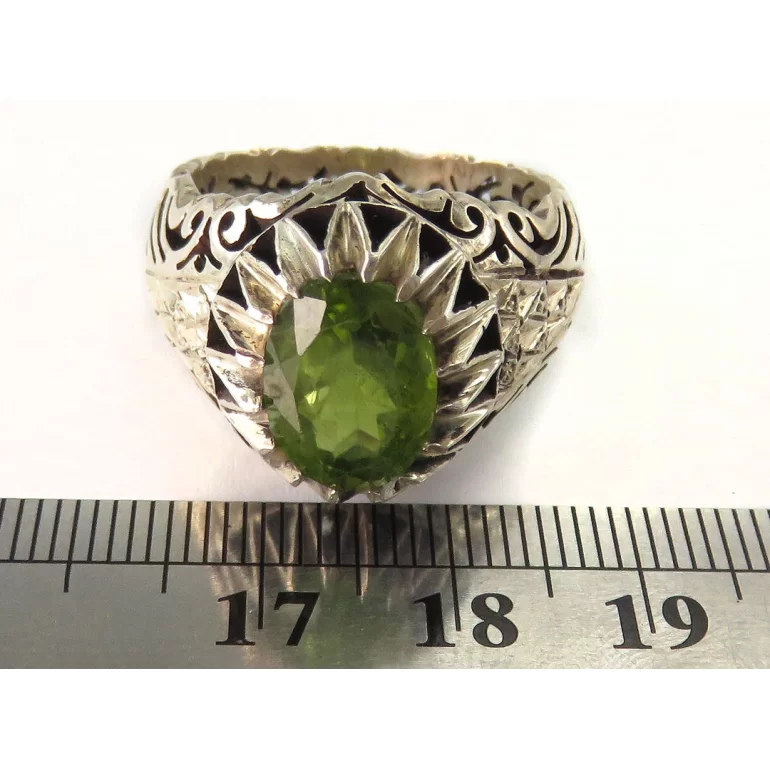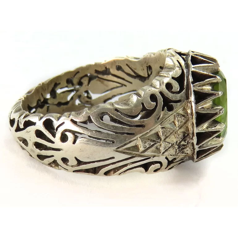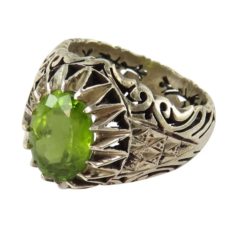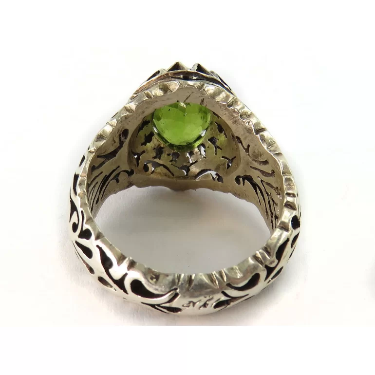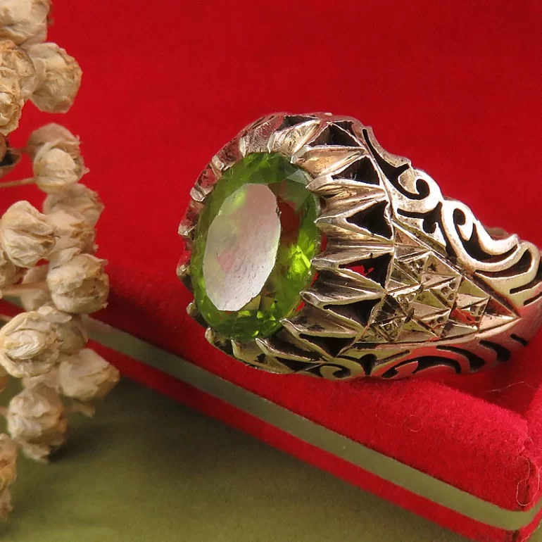 رکاب این انگشتر مردانه از نقره 925 عیار بوده و نگین آن از جنس زبرجد می باشد. وزن این انگشتر نفیس تقریبا 16 گرم است و به صورت حرفه ای به دست استادکار خبره و باتجربه ساخته می شود و دارای مخرج کاری دست ساز است.