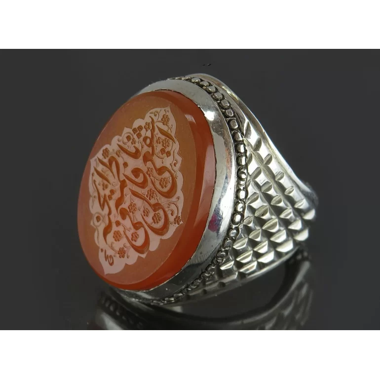 انگشتر نقره مردانه مدل عقیق نارنجی دست ساز حکاکی یا فاطمه اشفعی لی فی الجنه کد 93669