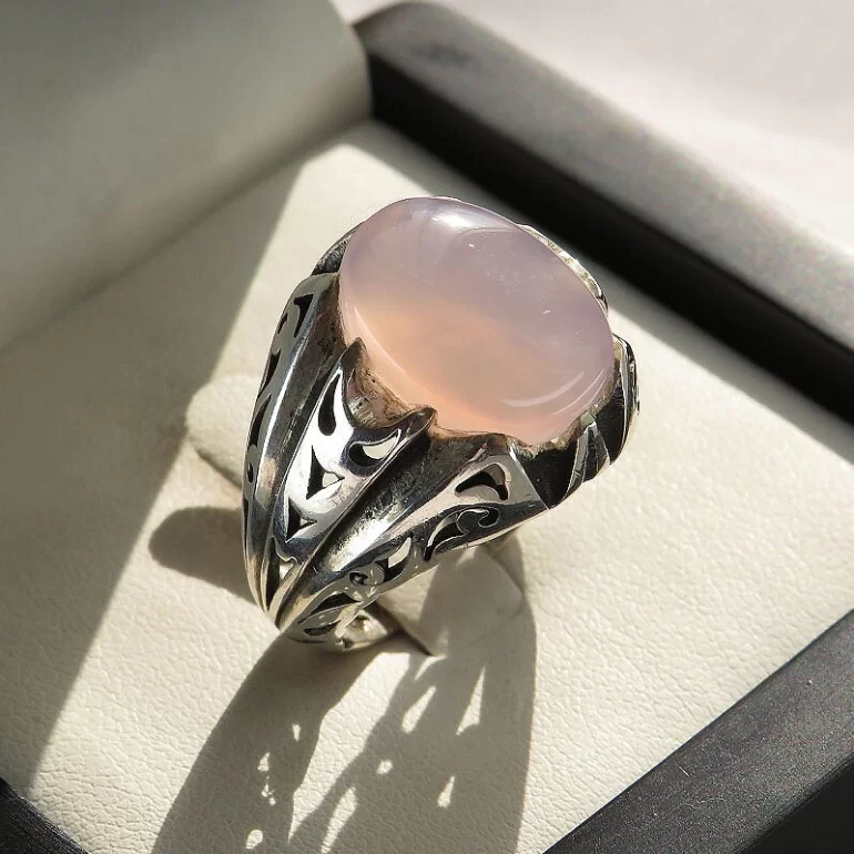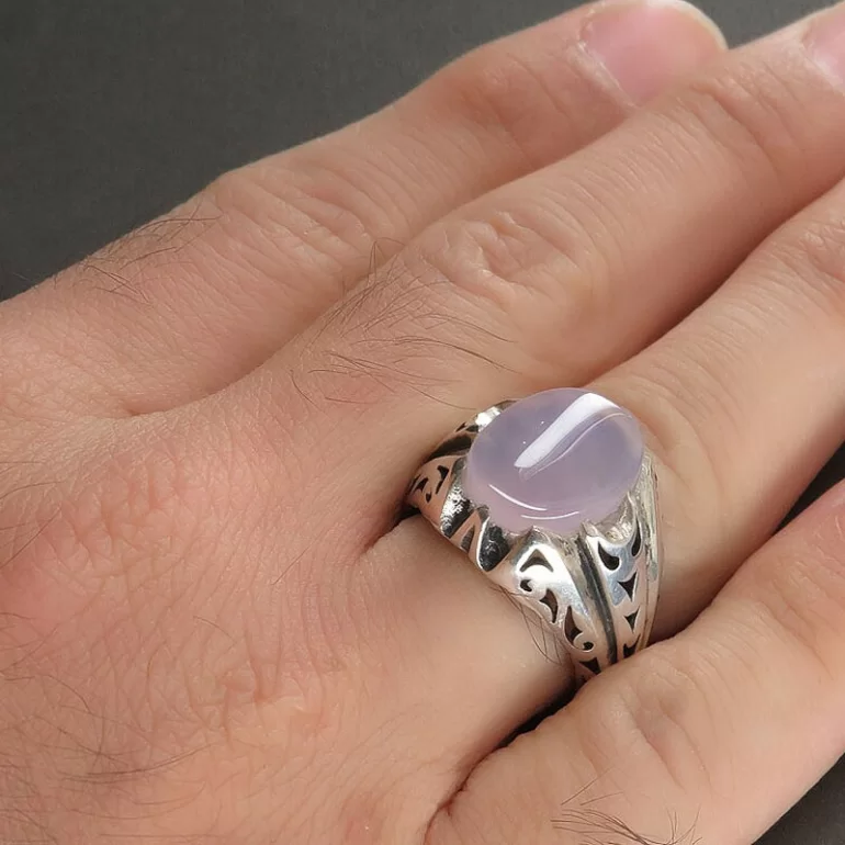 رکاب این انگشتر مردانه از نقره 925 عیار بوده و نگین آن از جنس عقیق یمن کبود می باشد. وزن این انگشتر نفیس تقریبا 11 گرم است و به صورت حرفه ای به دست استادکار خبره و باتجربه ساخته می شود.