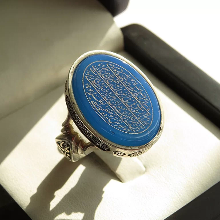 انگشتر مردانه عقیق آیت الکرسی، رکاب این انگشتر از نقره 925 عیار با وزن تقریبا 18 گرم است. سفارشات هر انگشتر بلافاصله به دست اساتید خبره و زبردست در زمان کوتاهی، درست مطابق سایزی که شما ثبت می‌کنید ساخته شده و آماده ارسال می‌شوند. بدنه این انگشترها دارای ضخامت و کیفیت بالایی می‌باشند، به طوری که ترکیب نقره های اصیل با سنگ نگینشان، زیبایی خیره کننده‌ای را خواهند ساخت. محصولات انگشتر ربیع از قبل آماده نشده اند و همه آنها مطابق با سایز دست شما که از طریق منو انتخاب می‌کنید، ساخته خواهند شد.