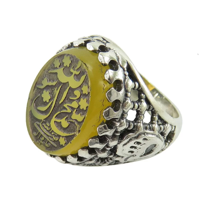 انگشتر نقره مردانه مدل عقیق زرد حکاکی محمد رسول الله صل الله علیه و اله کد 49871
