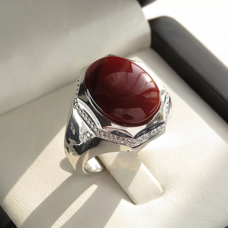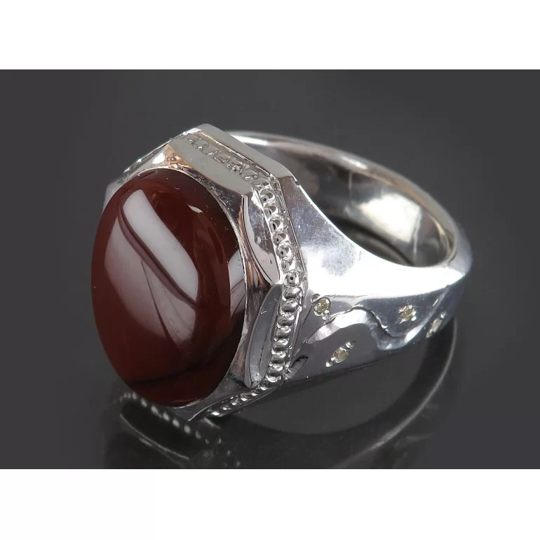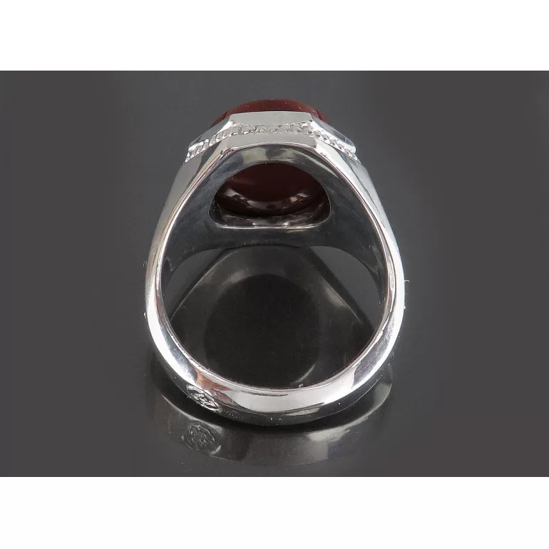رکاب این انگشتر مردانه از نقره 925 عیار بوده و نگین آن از جنس عقیق یمن دست ساز با برلیان اصل می باشد. وزن این انگشتر نفیس تقریبا 19 گرم است و به صورت حرفه ای به دست استادکار خبره و باتجربه ساخته می شود.