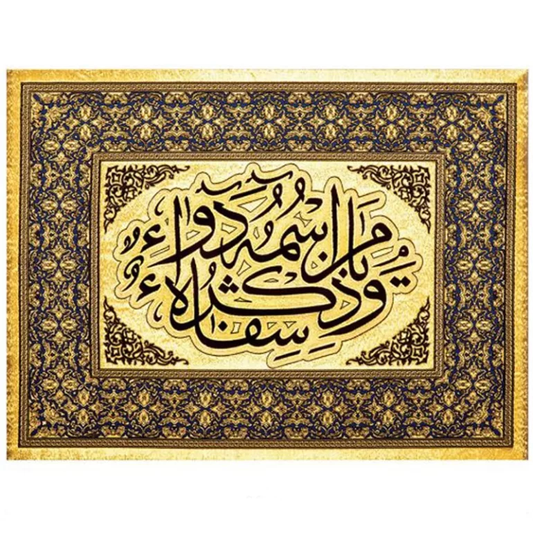 تابلو بوم زرین بافت طرح یا من اسمه دواء و ذکره شفاء کد 705