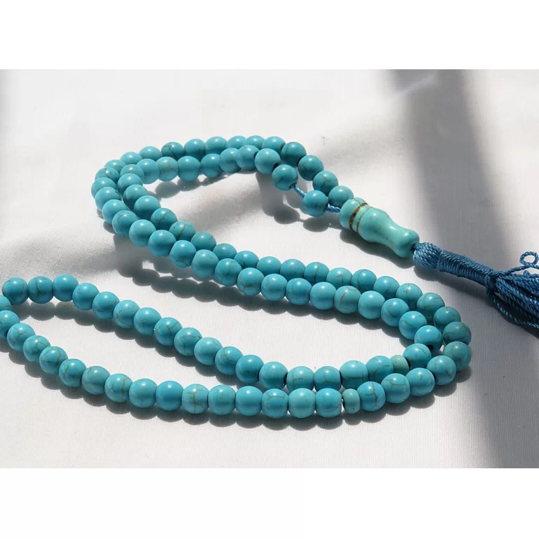 تسبیح فیروزه 101 دانه با طراحی بسیار زیبا و فوق العاده که هر سلیقه ای را مجذوب خود میکند. تعداد مهره های این تسبیح 101 دانه است. طول تقریبی تسبیح (قسمت دانهها و شیخک) 27 سانتیمتر بوده و وزن آن تقریبا 28 گرم میباشد.