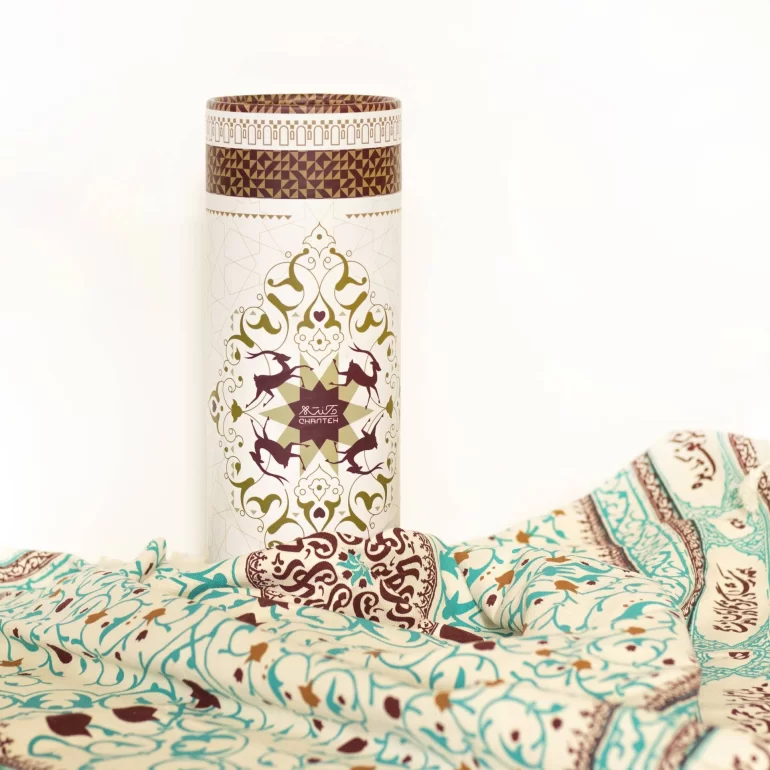 این سفره زیبا در ابعاد 80×80 سانتی‌متر تولید شده است و طرح آن به روش چاپ سیلک روی پارچه متقال نقش بسته است. در حاشیه این سفره، دعای سفره به زبان فارسی نقش بسته است.