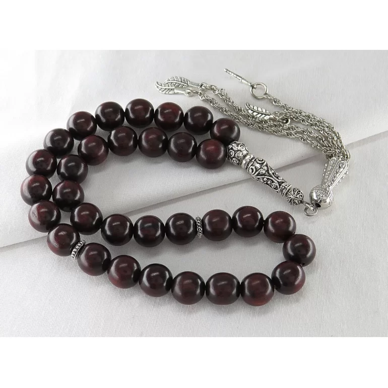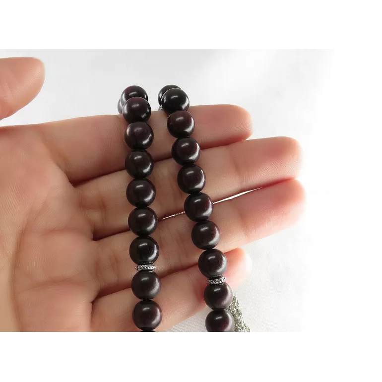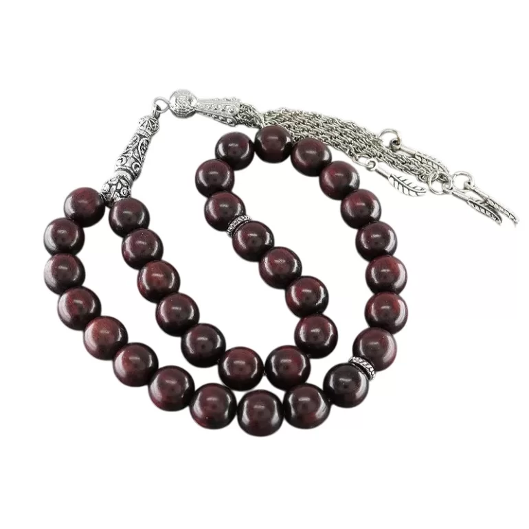 تسبیح 33 دانه چوب صندل با طراحی بسیار زیبا و فوق العاده که هر سلیقه ای را مجذوب خود میکند. تعداد مهره های این تسبیح 33 دانه است. طول تقریبی تسبیح (قسمت دانهها و شیخک) 16 سانتیمتر بوده و وزن آن تقریبا 18.5 گرم میباشد.