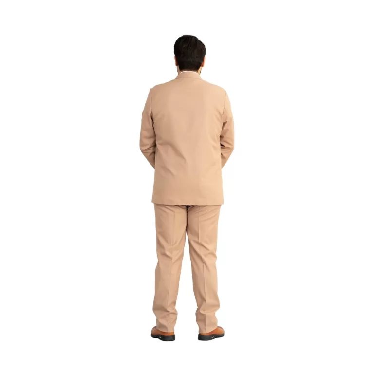 کت و شلوار سافاری رنگ کرم دارای قواره کلاسیک و دراپ 6 بوده و در سایز های 48 تا 60 تولید و عرضه می‌شود که از قسمت منوی سایز می‌توانید سایز موردنظر را انتخاب نمایید. خرید کت و شلوار مناسب یکی از مهم ترین نکات داشتن استایل خاص برای آقایان می‌باشد. برای داشتن ظاهری شیک، باید در انتخاب پارچه، نوع دوخت و رنگ و … دقت داشت. یقه استفاده شده در این کار از نوع یقه خشتی می‌باشد. این یقه برای افرادی که تمایل به بلندتر دیده شدن دارند مناسب است. این کار دارای سه دکمه است که معمولا بسته نمی‌شود. این نمونه کت و شلوار مناسب موقعیت های متفاوت همچون مهمانی، استفاده روزمره، محل کار و … می‌باشد.
