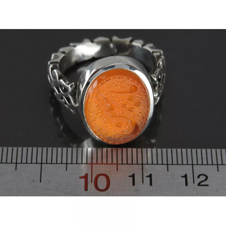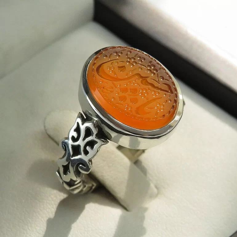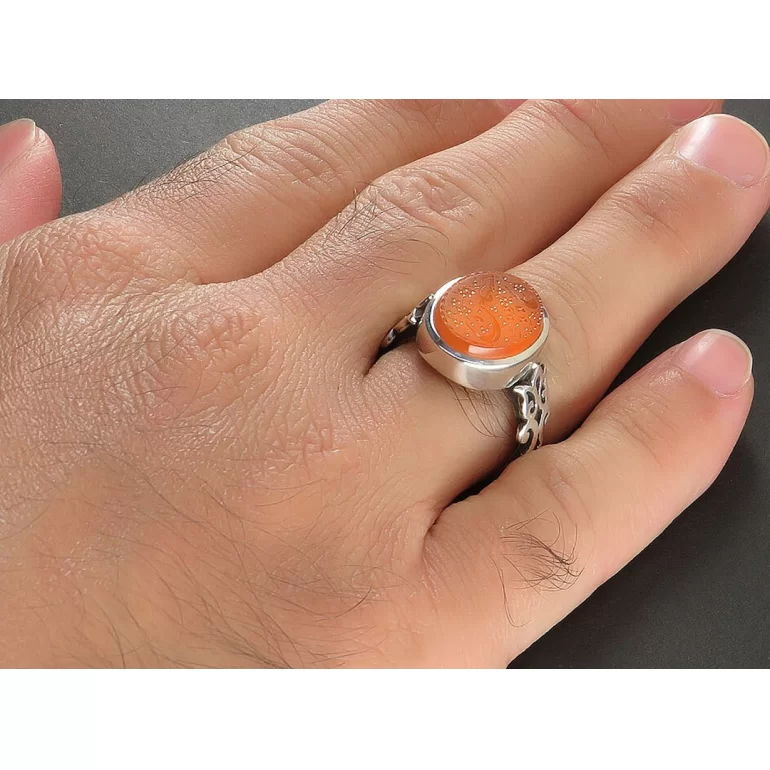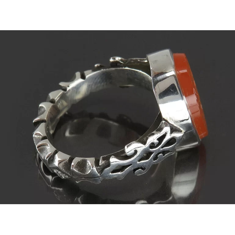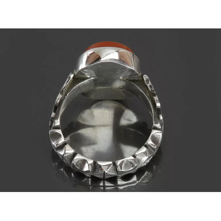 رکاب این انگشتر مردانه از نقره 925 عیار بوده و نگین آن از جنس عقیق یمن و خاک تربت کربلا می باشد. وزن این انگشتر نفیس تقریبا 12 گرم است و به صورت حرفه ای به دست استادکار خبره و باتجربه ساخته می شود.
