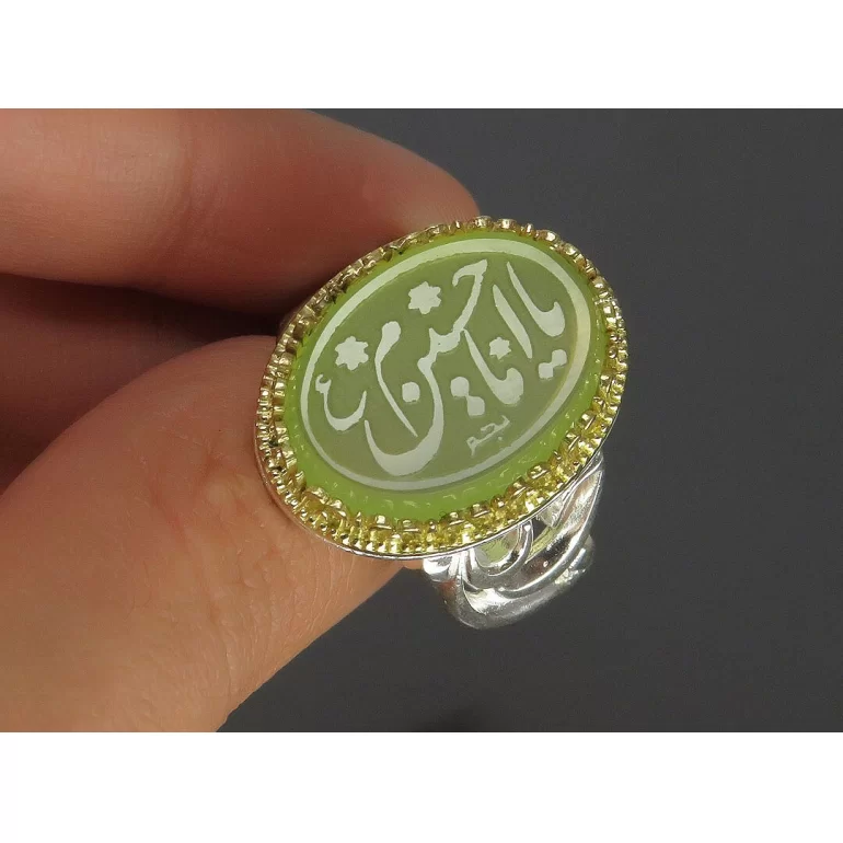 انگشتر نقره مردانه مدل عقیق سبز حکاکی یا امام حسین (ع) کد 79013