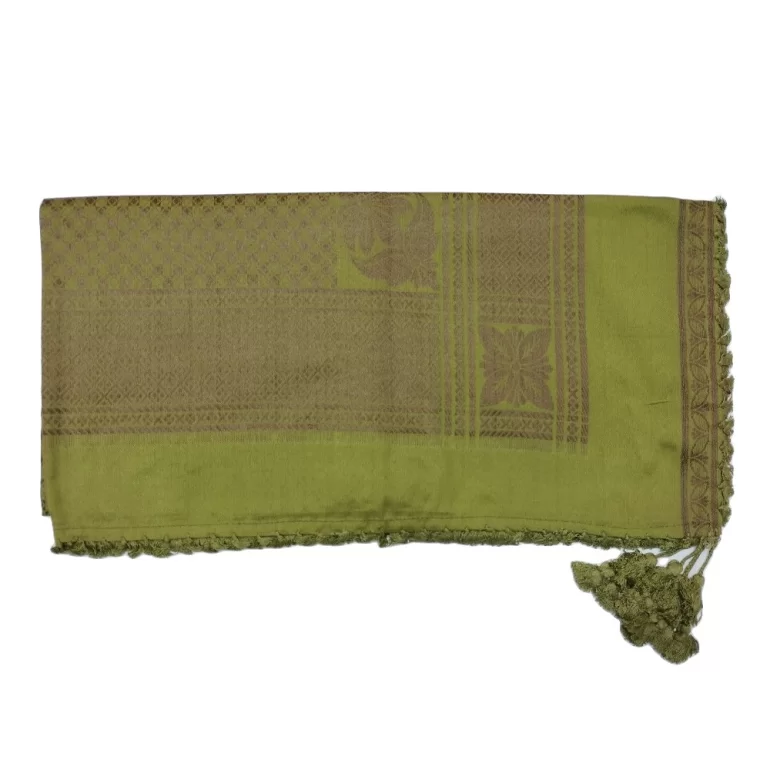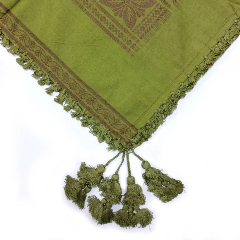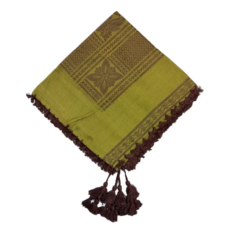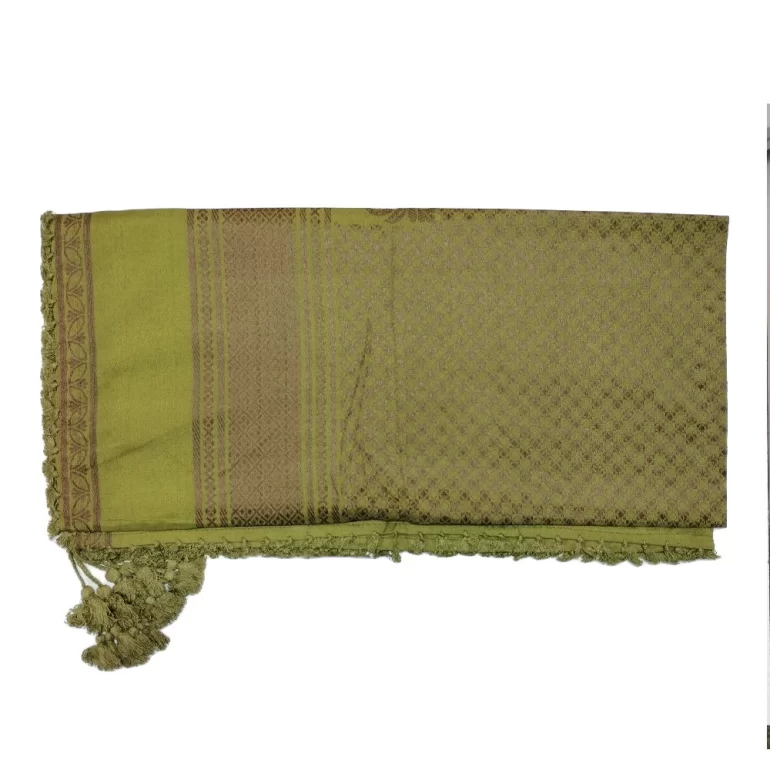 چفیه عمانی یاسمین طرح شطرنجی رنگ سبز زیتونی و قهوه ای تیره