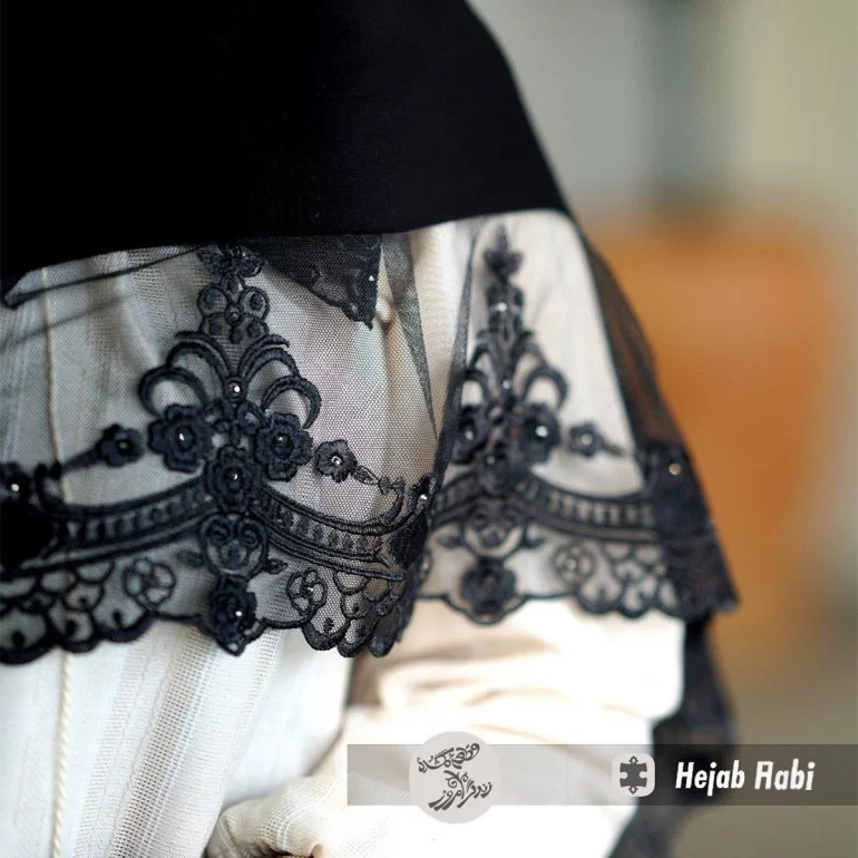 روسری مشکی کرپ حریر دانتل دار کد 2508