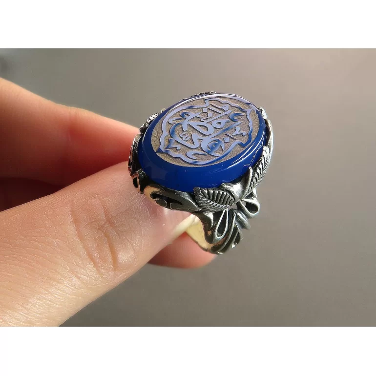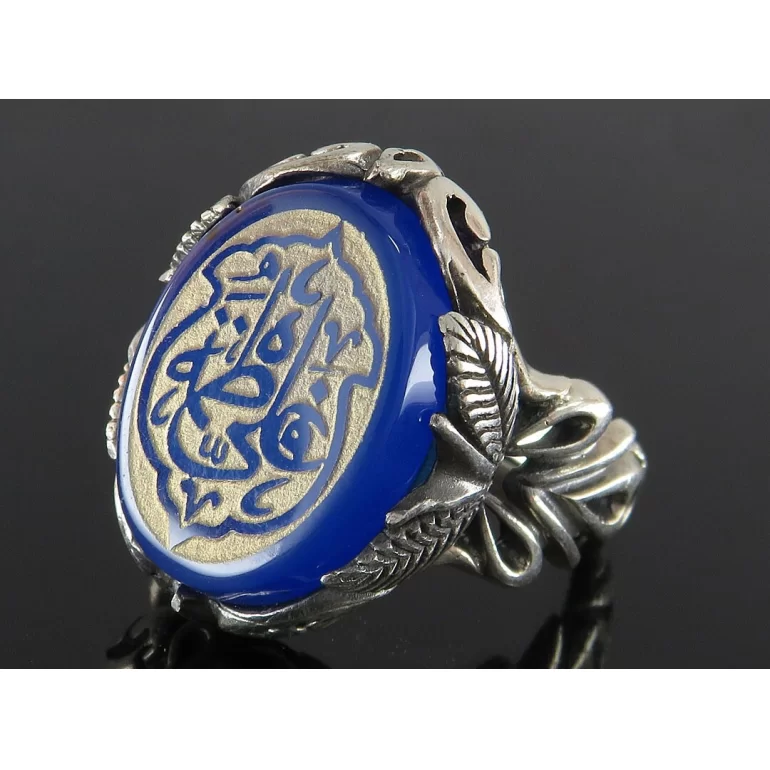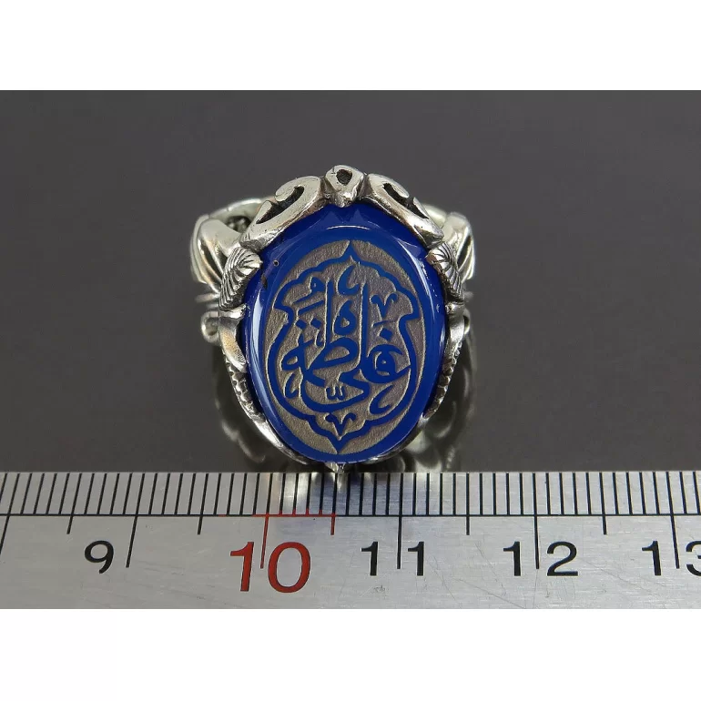 انگشتر نقره مردانه مدل عقیق آبی حکاکی علی و فاطمه کد 77715