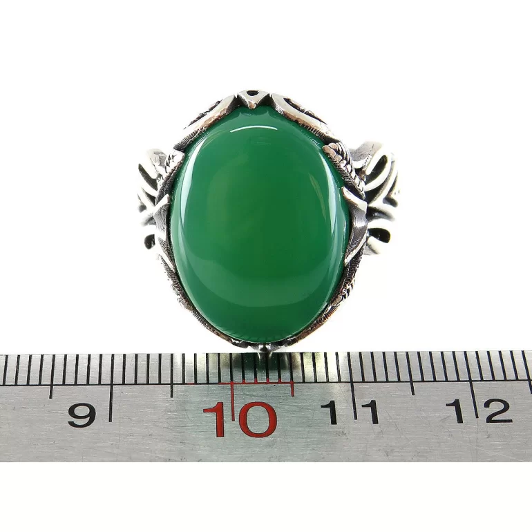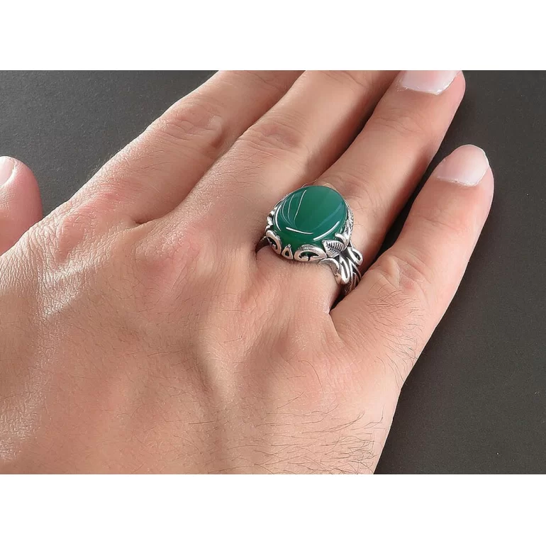 انگشتر نقره مردانه مدل عقیق سبز کد 71010