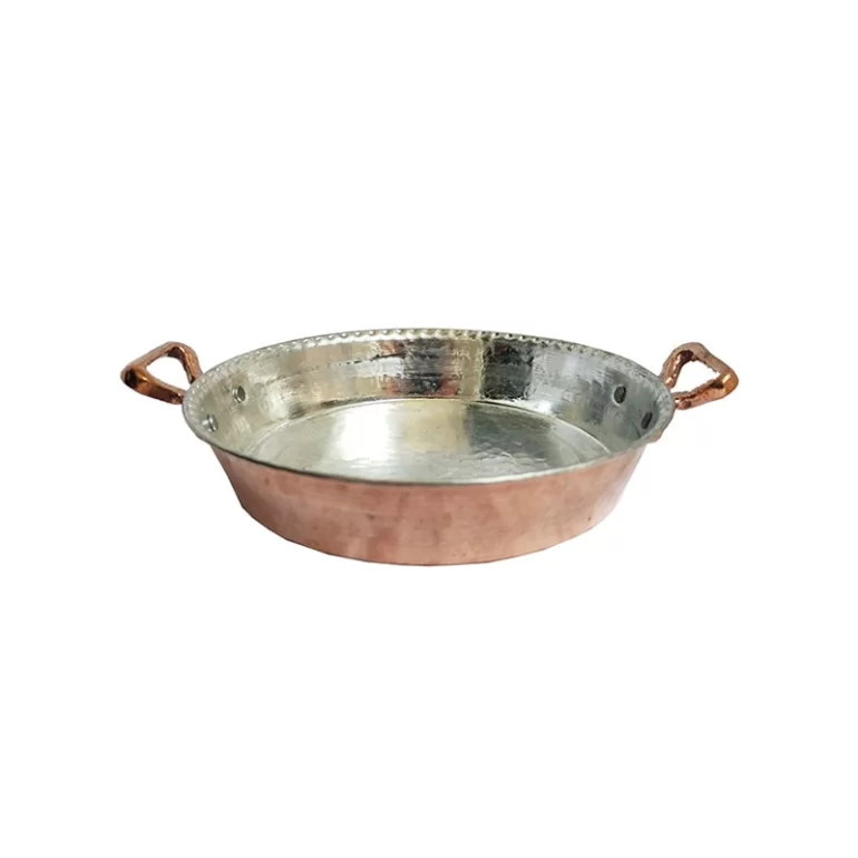 استفاده از ظروف مسی در بین ملتها سابقه هزاران ساله دارد. اهل بیت علیهم السلام در برخی روایات خود استفاده از مس را تایید نمودهاند. خواص این ظروف دیگر برکسی پوشیده نیست بلکه دانشمندان روز به روز به یافته های جدیدی درباره مس پیمیبرند. این تابه مسی، با قلع خالص و بدون سرب اندود شده است. این تابه در دو سایز کوچک با قطر دهانه 23 و ارتفاع 5 و بزرگ با قطر دهانه 27 و ارتفاع 5 و دور ظرف 77 سانتیمتر میباشد که میتوانید از طریق منو سایز مورد نظر خود را انتخاب کنید.