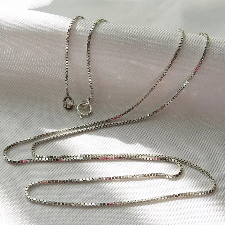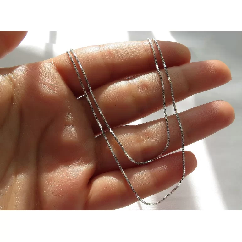 زنجیر 50 سانتی ونیزی ظریف، این محصول از فریم نقره 925 عیار ساخته شده که با وزن حدود 2.5 گرم و در ابعاد 50 سانتی متر میباشد.