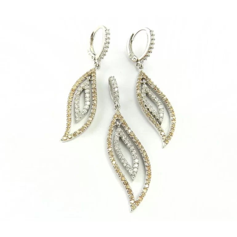 سرویس زنانه طرح غزل، این محصول از فریم نقره 925 عیار ساخته شده که با وزن حدود 8 گرم است. این محصول شامل یک جفت گوشواره و یک عدد گردنبند می باشد.