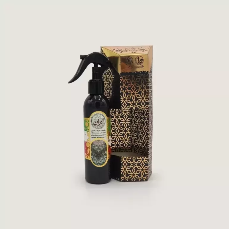 محلول خوشبو کننده ایران، با حجم 200 میلی لیتر و وزن 350 گرم با رایحهای خوشبو و بدون الکل و مواد شیمیایی مناسب برای خوشبو کردن هوا میباشد.