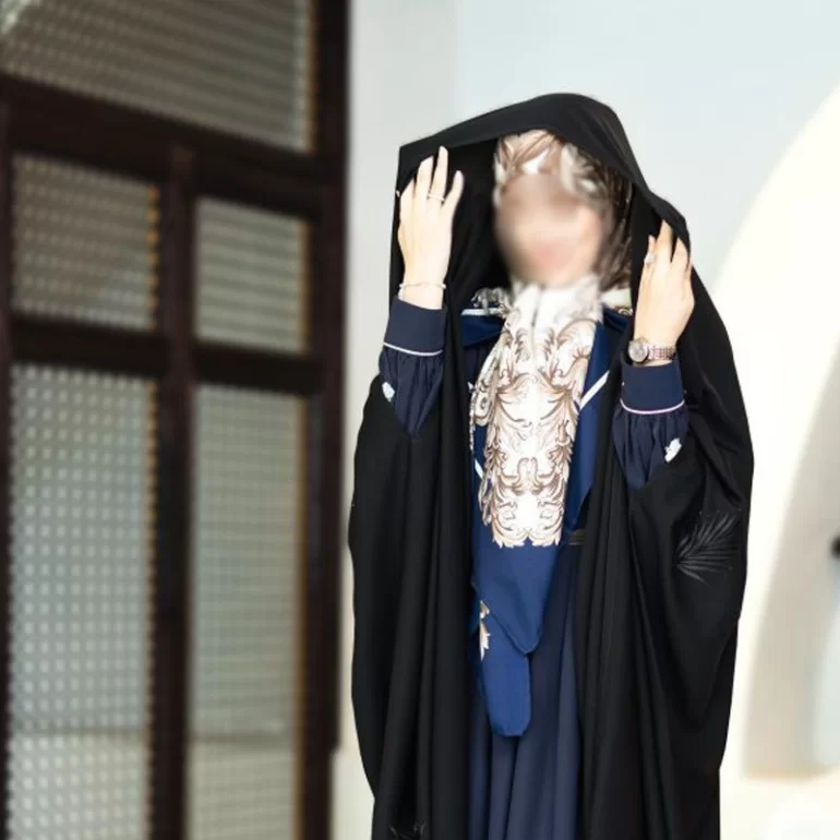 چادر مشکی عربی طرح برگ گلدوزی شده کد CH22104