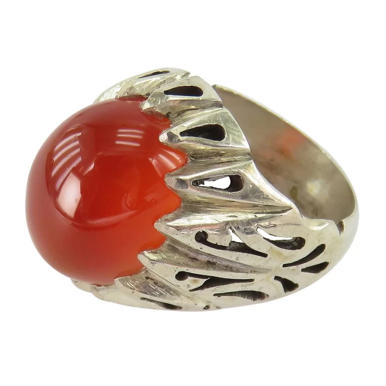 انگشتر نقره مردانه مدل عقیق خراسان قرمز دست ساز کد 48302
