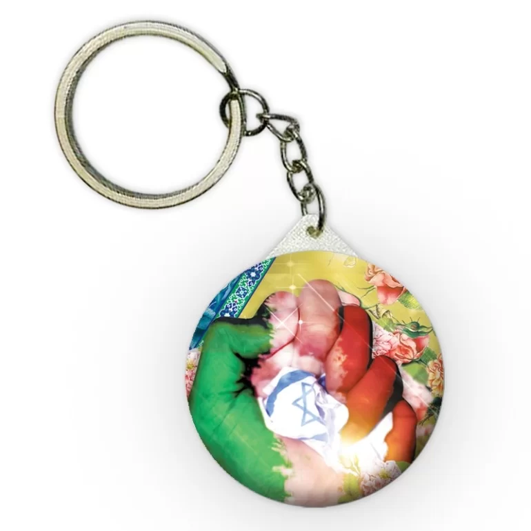 جنس این جاکلیدی یک طرف فلزی و یک طرف پلاستیک فشرده می باشد و در سایز 44 میلیمتر چاپ می شود. این نمونه به راحتی با دستمال نم دار تمیز شده و قابل شست‌وشو می‌باشد . این دایره ی کوچک، با حلقه و زنجیری که پشت خود دارد قادر است به هر آنجایی که بخواهید (کوله پشتی، کیف، جامدادی و ....) متصل شود.