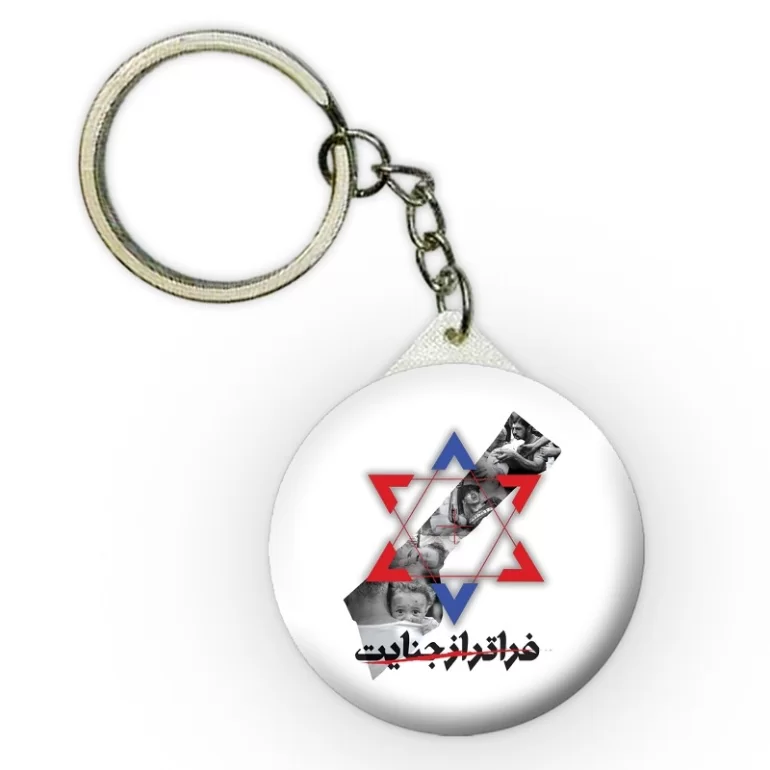جنس این جاکلیدی یک طرف فلزی و یک طرف پلاستیک فشرده می باشد و در سایز 44 میلیمتر چاپ می شود. این نمونه به راحتی با دستمال نم دار تمیز شده و قابل شستوشو میباشد . این دایره ی کوچک، با حلقه و زنجیری که پشت خود دارد قادر است به هر آنجایی که بخواهید (کوله پشتی، کیف، جامدادی و ....) متصل شود.