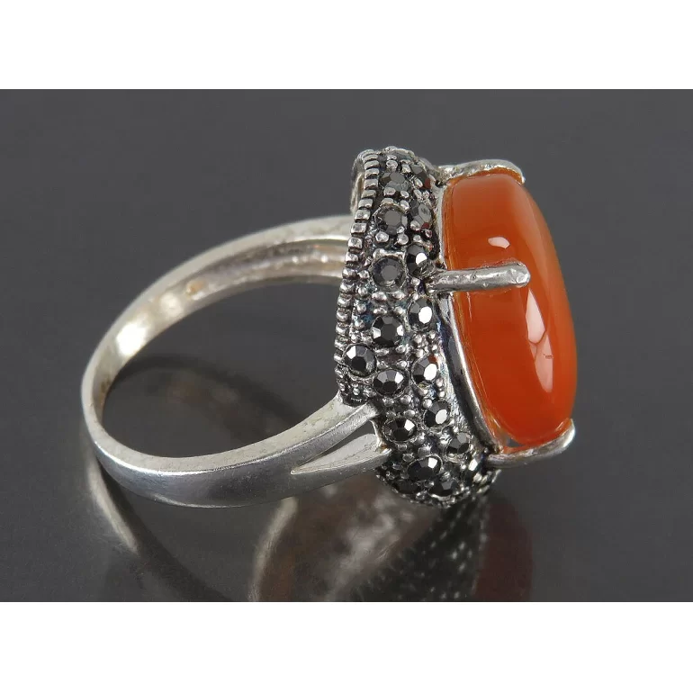انگشتر زنانه عقیق یمنی نارنجی طرح شمیم، رکاب این انگشتر از نقره 925 عیار با وزن تقریبا 6 گرم است. سفارشات هر انگشتر بلافاصله به دست اساتید خبره و زبردست در زمان کوتاهی، درست مطابق سایزی که شما ثبت میکنید ساخته شده و آماده ارسال میشوند. بدنه این انگشترها دارای ضخامت و کیفیت بالایی میباشند، به طوری که ترکیب نقره های اصیل با سنگ نگینشان، زیبایی خیره کنندهای را خواهند ساخت. محصولات انگشتر ربیع از قبل آماده نشده اند و همه آنها مطابق با سایز دست شما که از طریق منو انتخاب میکنید، ساخته خواهند شد.