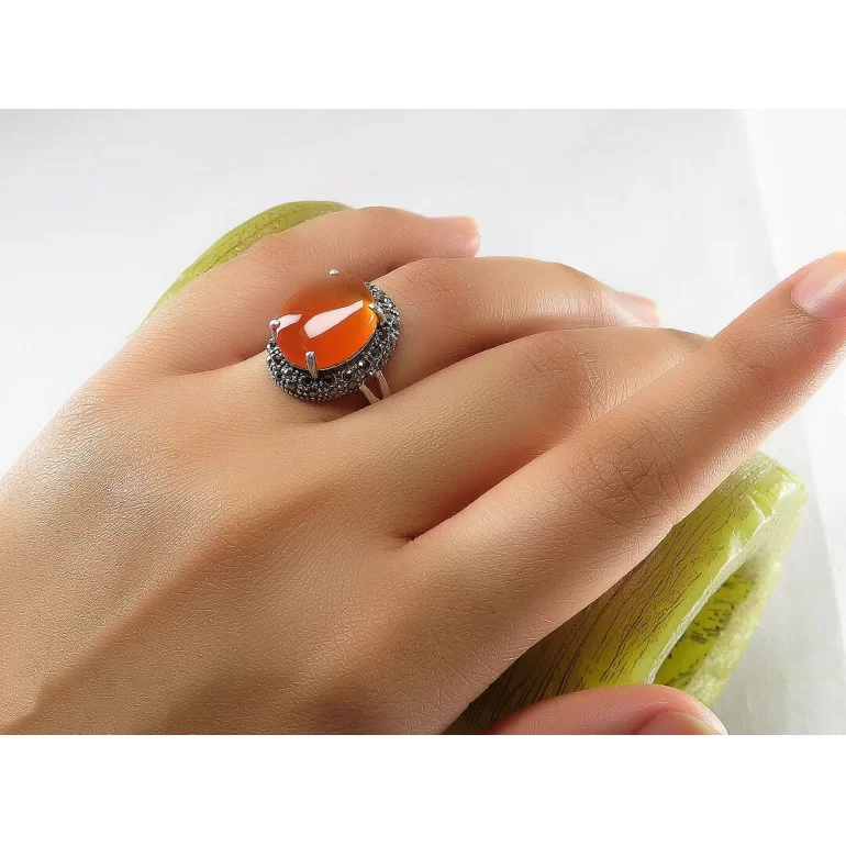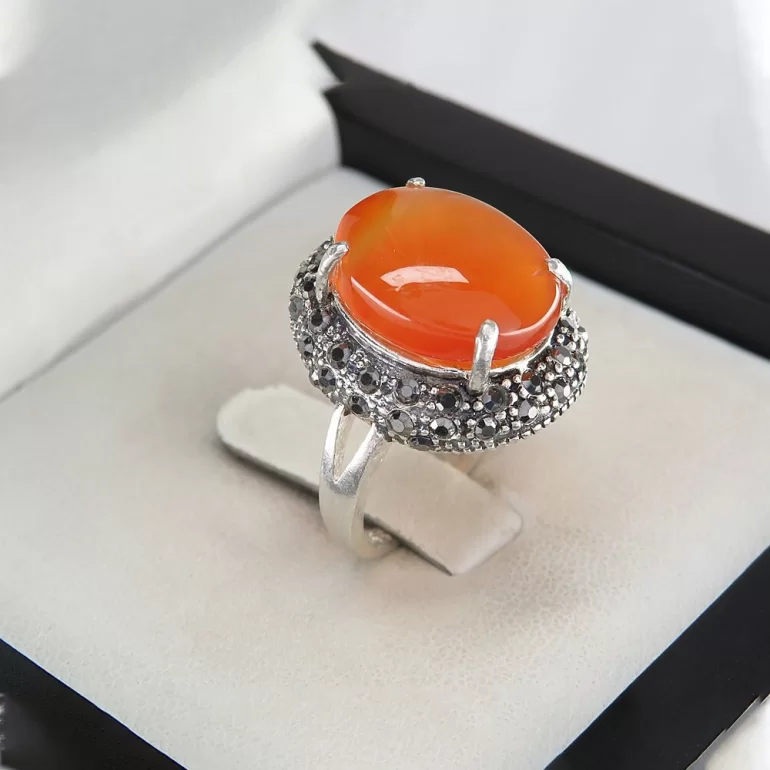 انگشتر زنانه عقیق یمنی نارنجی طرح شمیم رکاب نقره - کد 100096