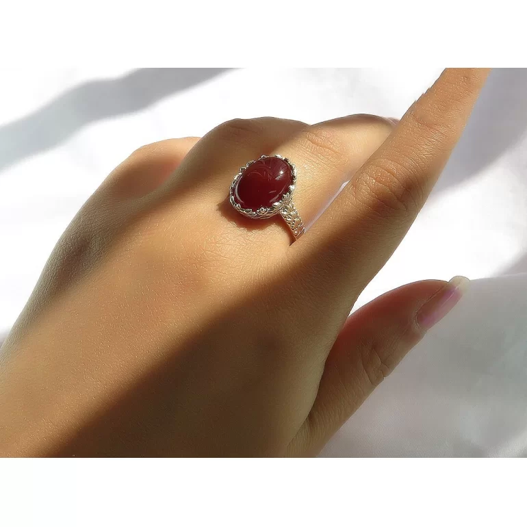 انگشتر زنانه عقیق قرمز سارگل رکاب نقره - کد 70972