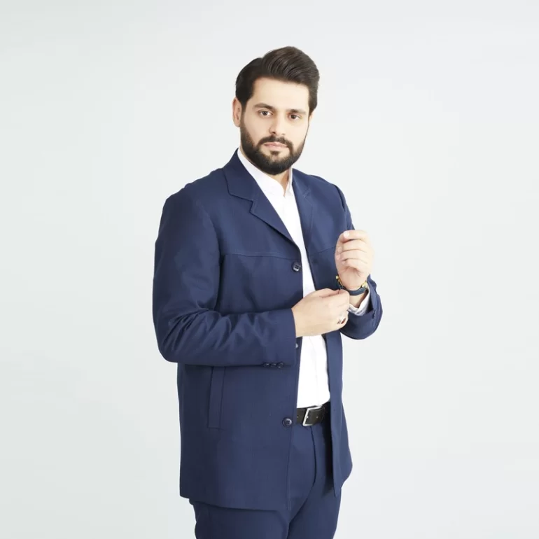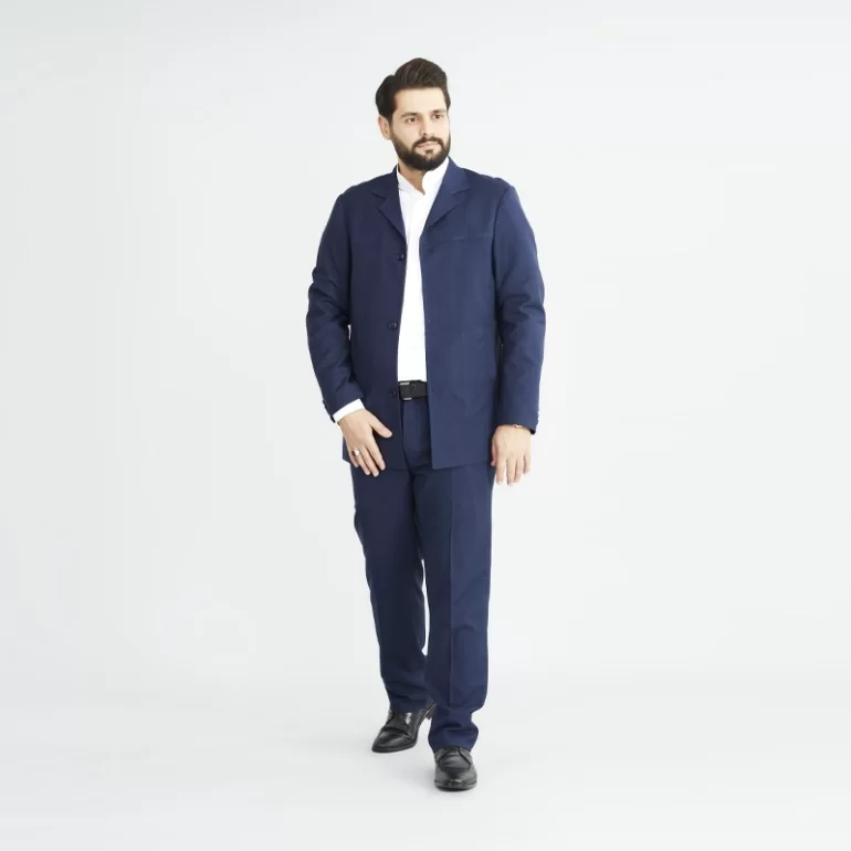 کت و شلوار سافاری، یقه این کت و شلوار از نوع یقه خشتی بوده و به صورت تک چاک و دراپ 6 است. همچنین این کت و شلوار دارای قواره کلاسیک می باشد.