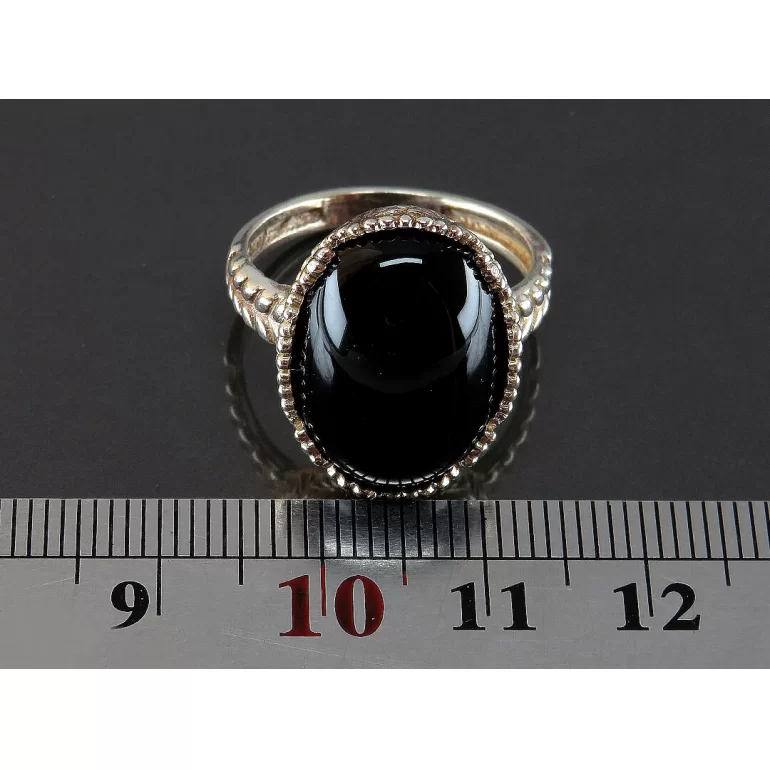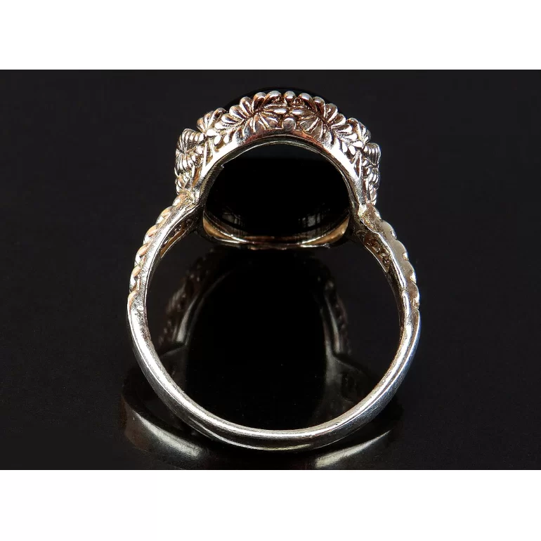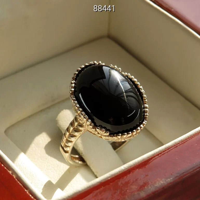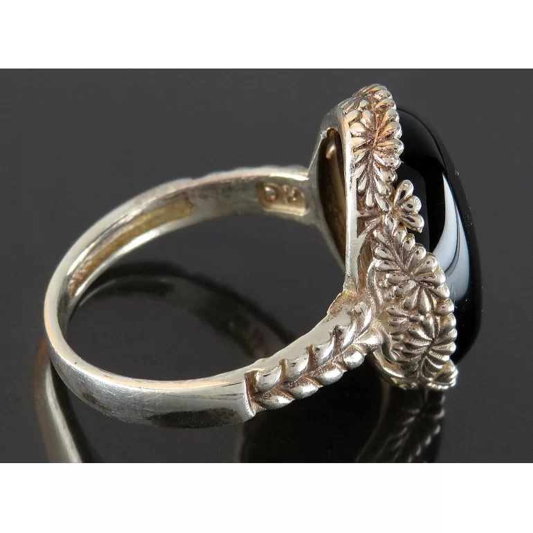 انگشتر زنانه نقره عقیق سیاه طرح شکوفه - کد 88441
