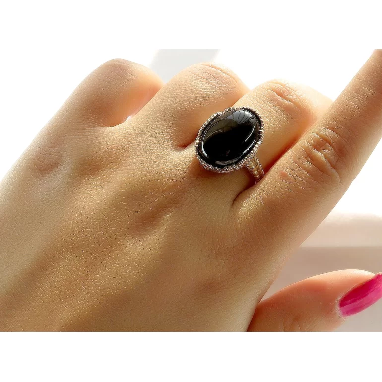 انگشتر زنانه نقره عقیق سیاه طرح شکوفه، رکاب این انگشتر از نقره 925 عیار با وزن تقریبا 5.5 گرم است سفارشات هر انگشتر بلافاصله به دست اساتید خبره و زبردست در زمان کوتاهی، درست مطابق سایزی که شما ثبت میکنید ساخته شده و آماده ارسال میشوند بدنه این انگشترها دارای ضخامت و کیفیت بالایی میباشند، به طوری که ترکیب نقره های اصیل با سنگ نگینشان، زیبایی خیره کنندهای را خواهند ساخت محصولات انگشتر ربیع از قبل آماده نشده اند و همه آنها مطابق با سایز دست شما که از طریق منو انتخاب میکنید، ساخته خواهند شد.