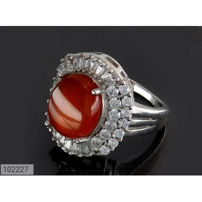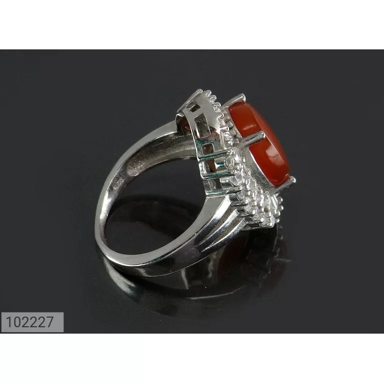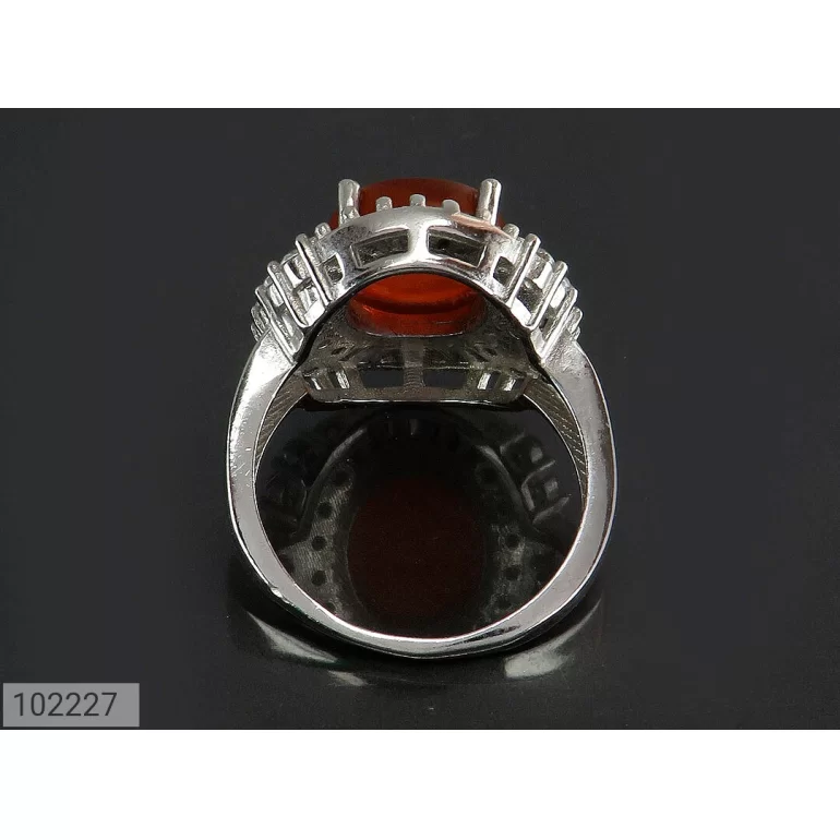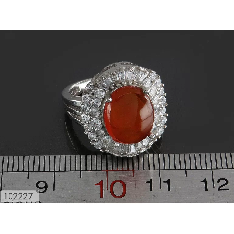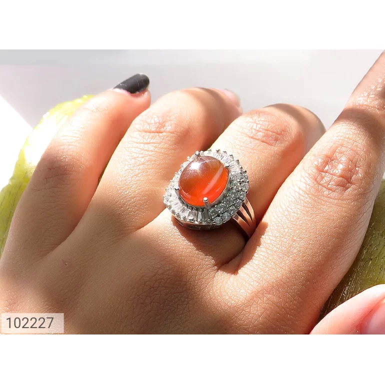 انگشتر زنانه نقره عقیق یمنی نارنجی طرح سروناز - کد 102227