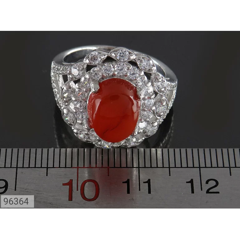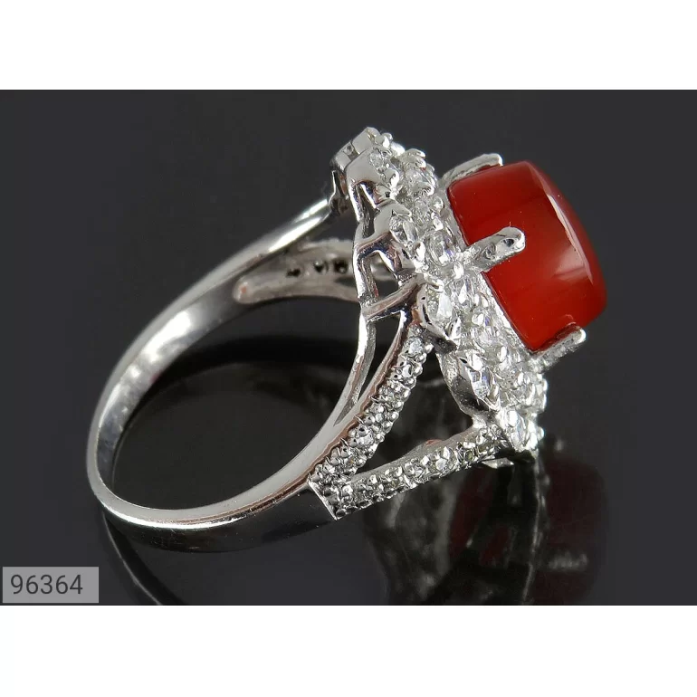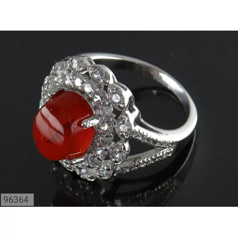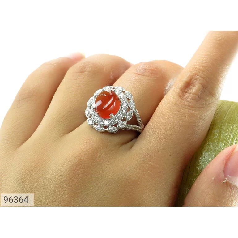انگشتر زنانه نقره عقیق یمنی قرمز طرح نازنین - کد 96364