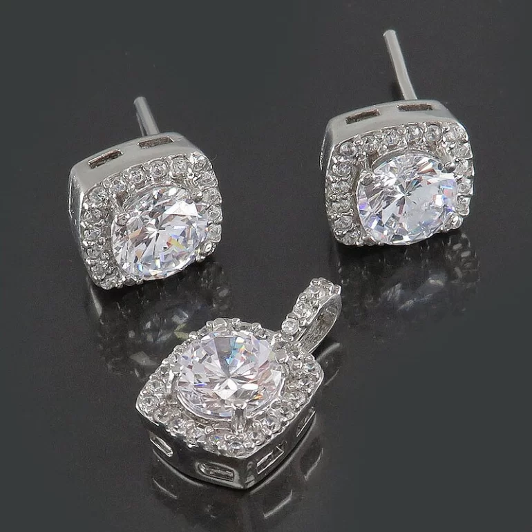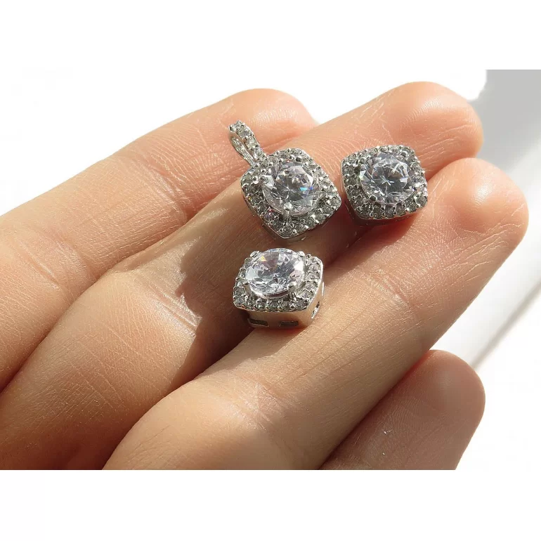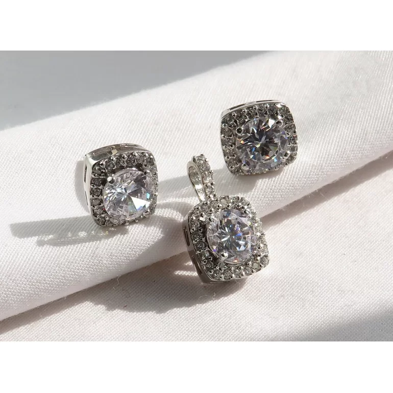 سرویس زنانه طرح گلناز، این محصول از فریم نقره 925 عیار ساخته شده که با وزن حدود 5 گرم است. این محصول شامل یک جفت گوشواره و یک عدد گردنبند می باشد.
