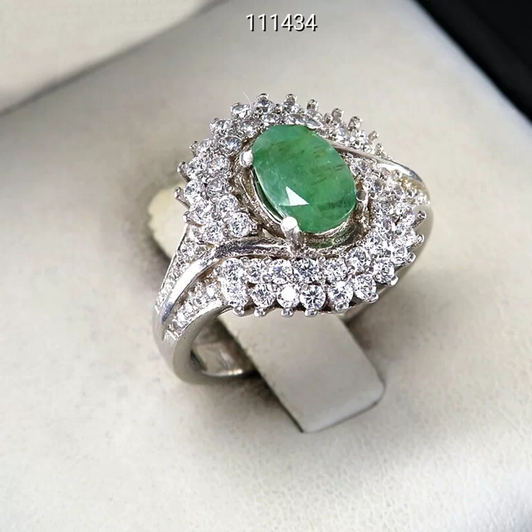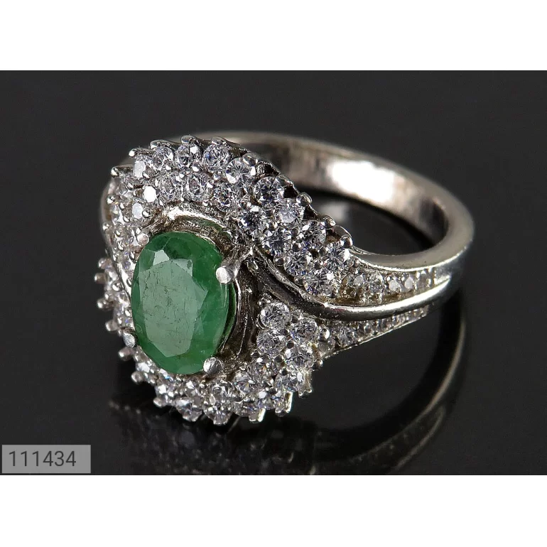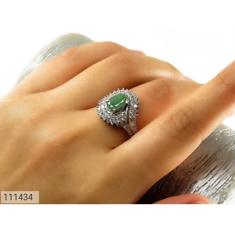 انگشتر زنانه نقره زمرد زامبیا طرح خاتون - کد 111434